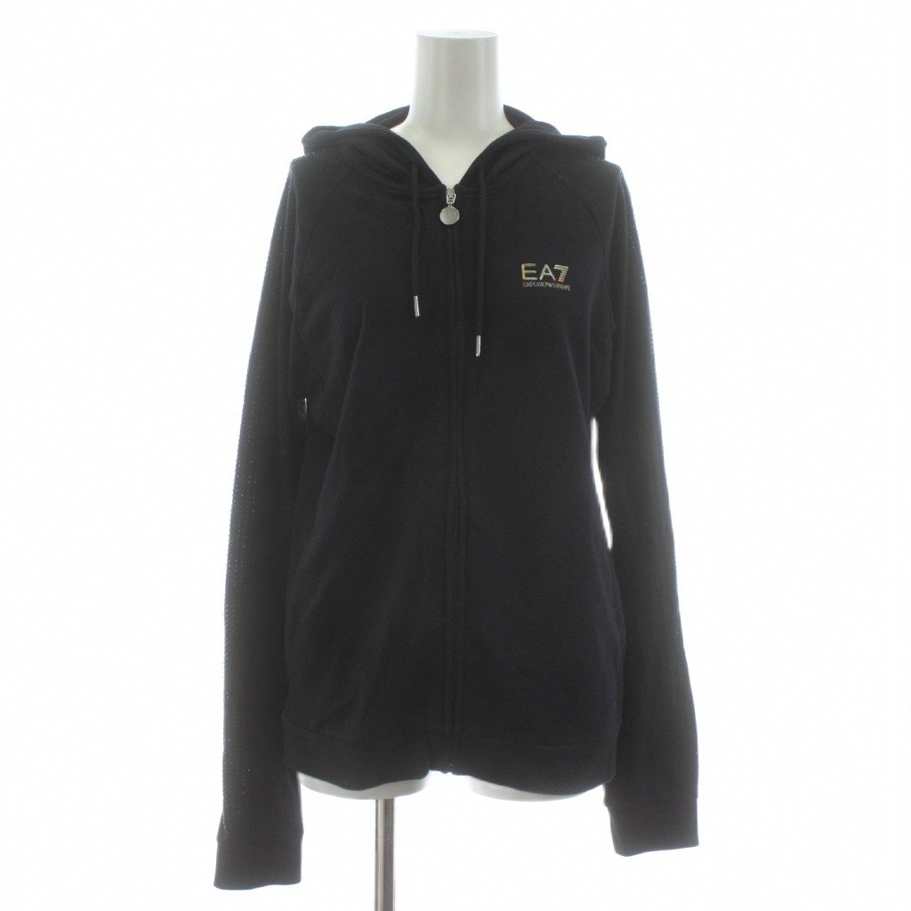 エンポリオアルマーニ EMPORIO ARMANI パーカー ジップアップ ロゴ ラインストーン装飾 ストレッチ L 黒 ブラック /KU レディース