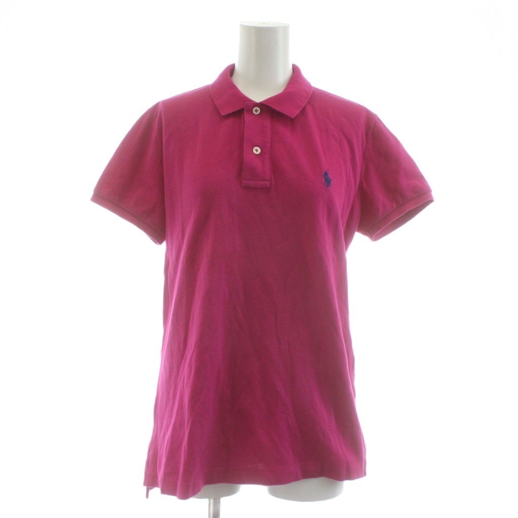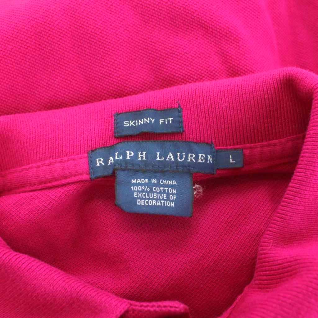 • ラルフローレン RALPH LAUREN SKINNY FIT ポロシャツ カットソー 鹿の子 半袖 ロゴ 刺繍 L ピンク /KU レディース
