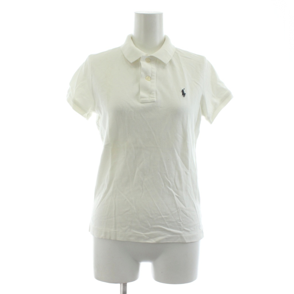 ラルフローレン RALPH LAUREN THE SKINNY POLO ポロシャツ カットソー 鹿の子 L 白 ホワイト ロゴ刺繍 半袖 /KU レディース