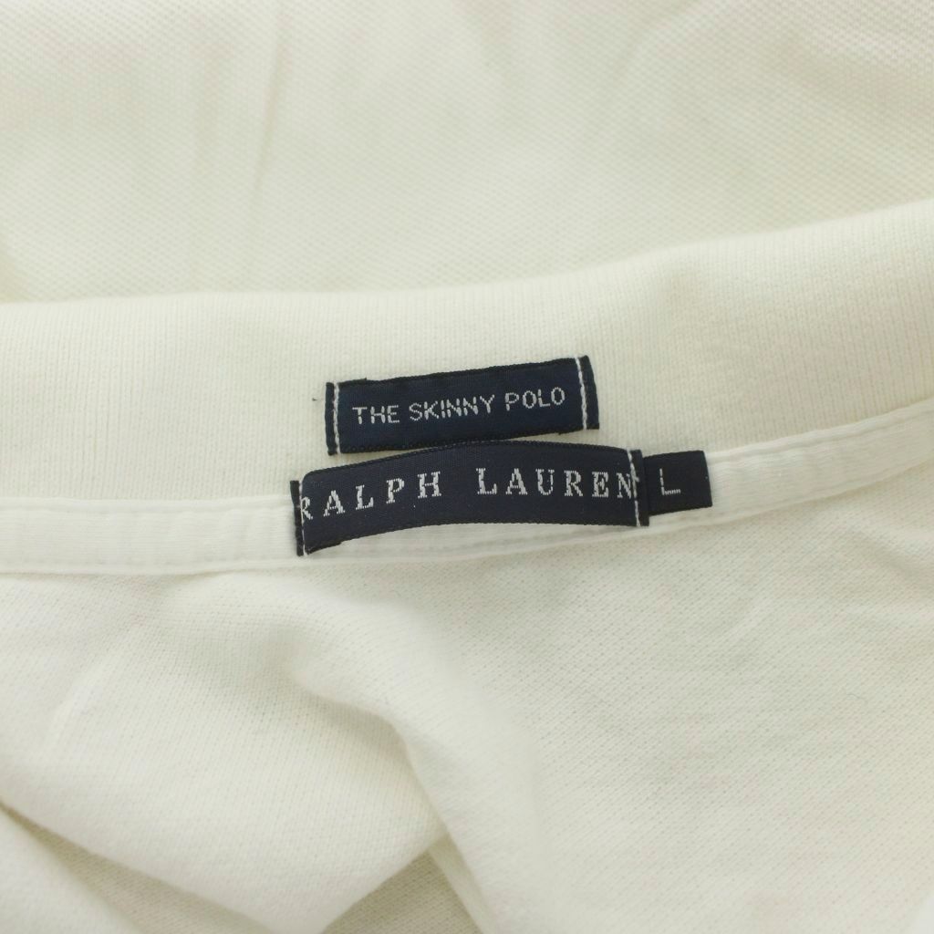 • ラルフローレン RALPH LAUREN THE SKINNY POLO ポロシャツ カットソー 鹿の子 L 白 ホワイト ロゴ刺繍 半袖 /KU レディース