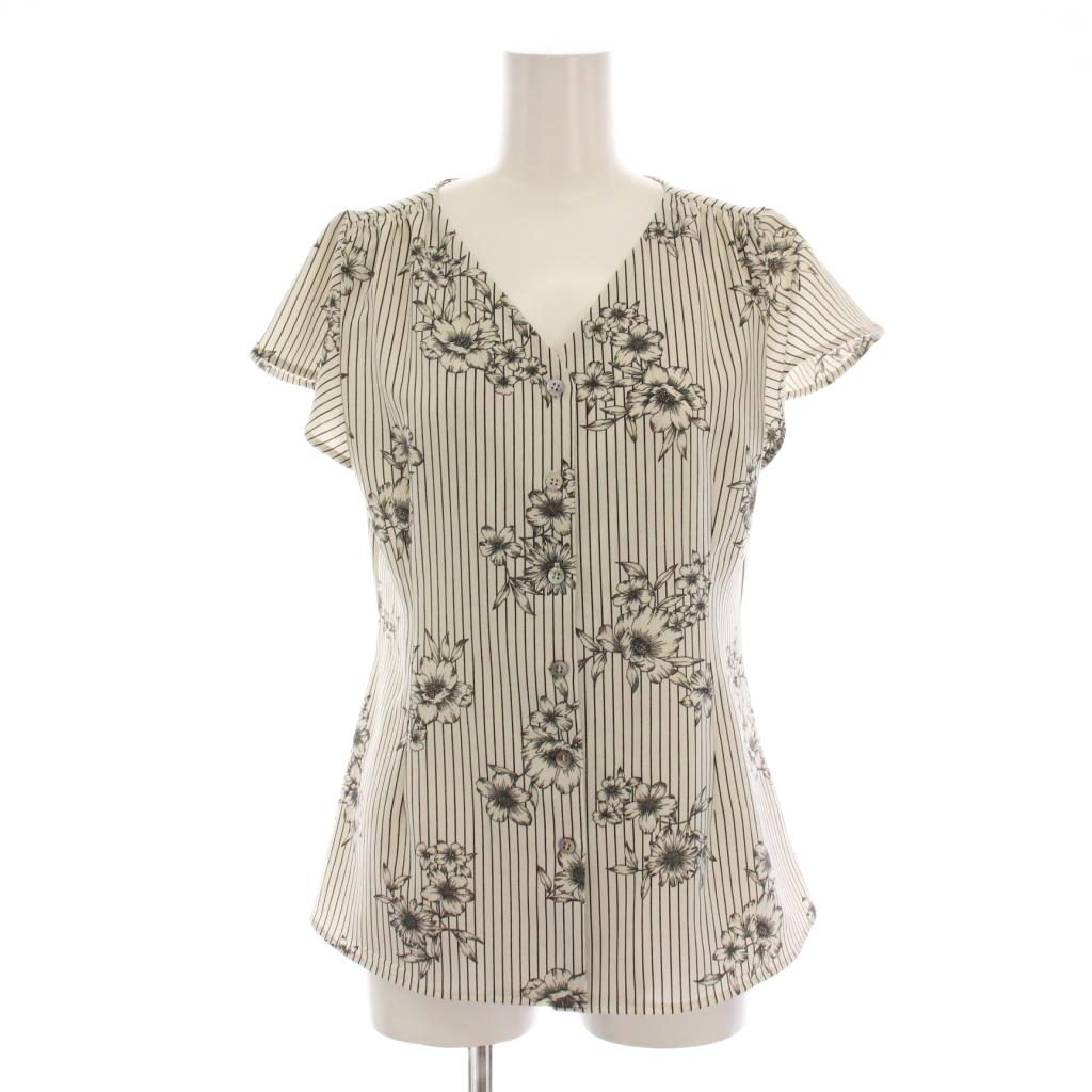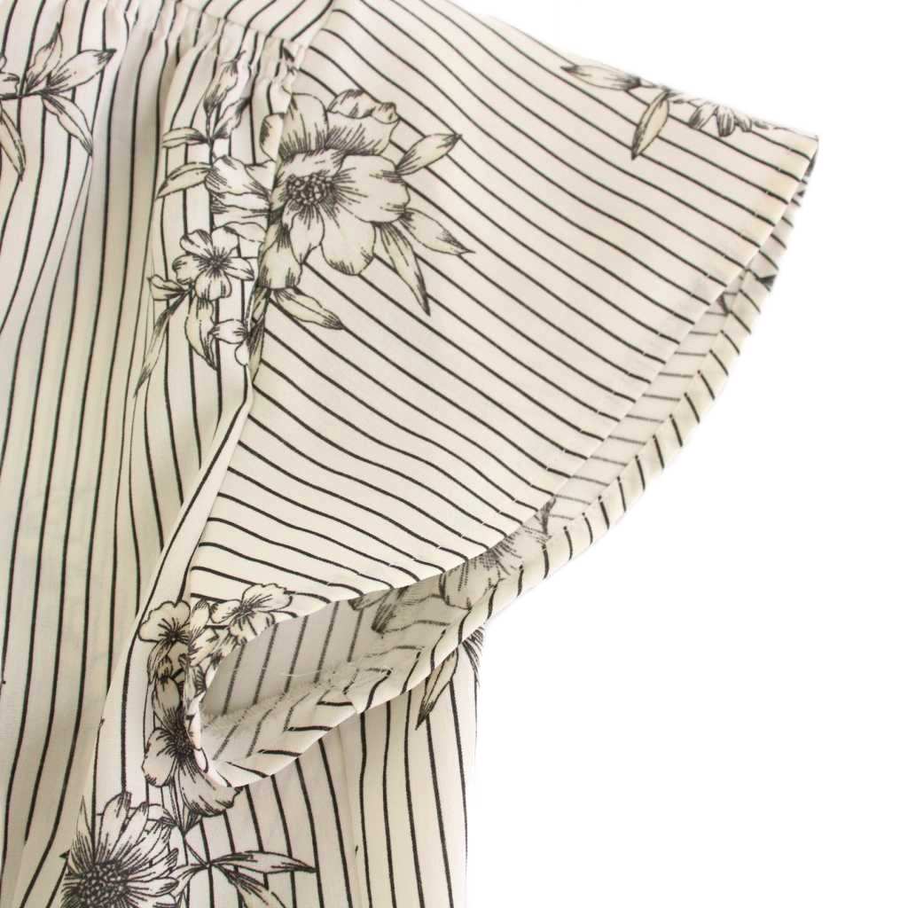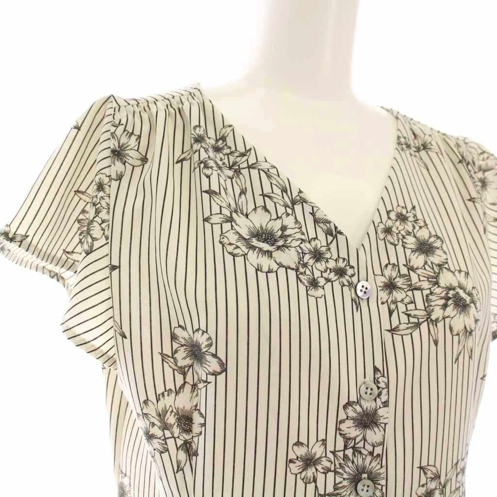 • イエナ IENA 25SS 前ボタンVネックブラウス シャツ ストライプ 花柄 36 白 ホワイト 黒 半袖 25051900902110 /YM レディース