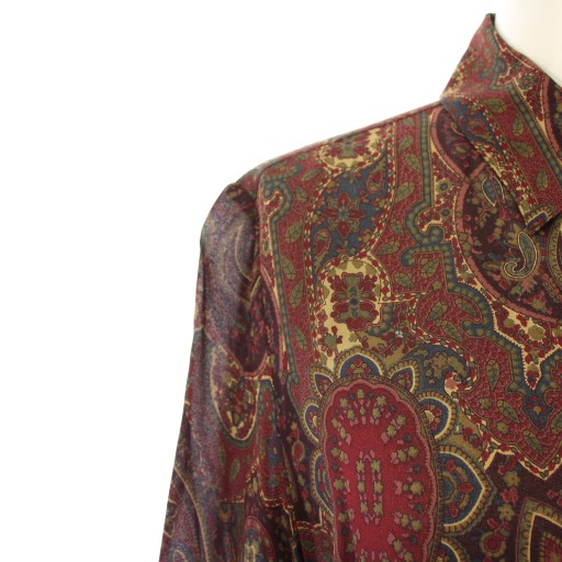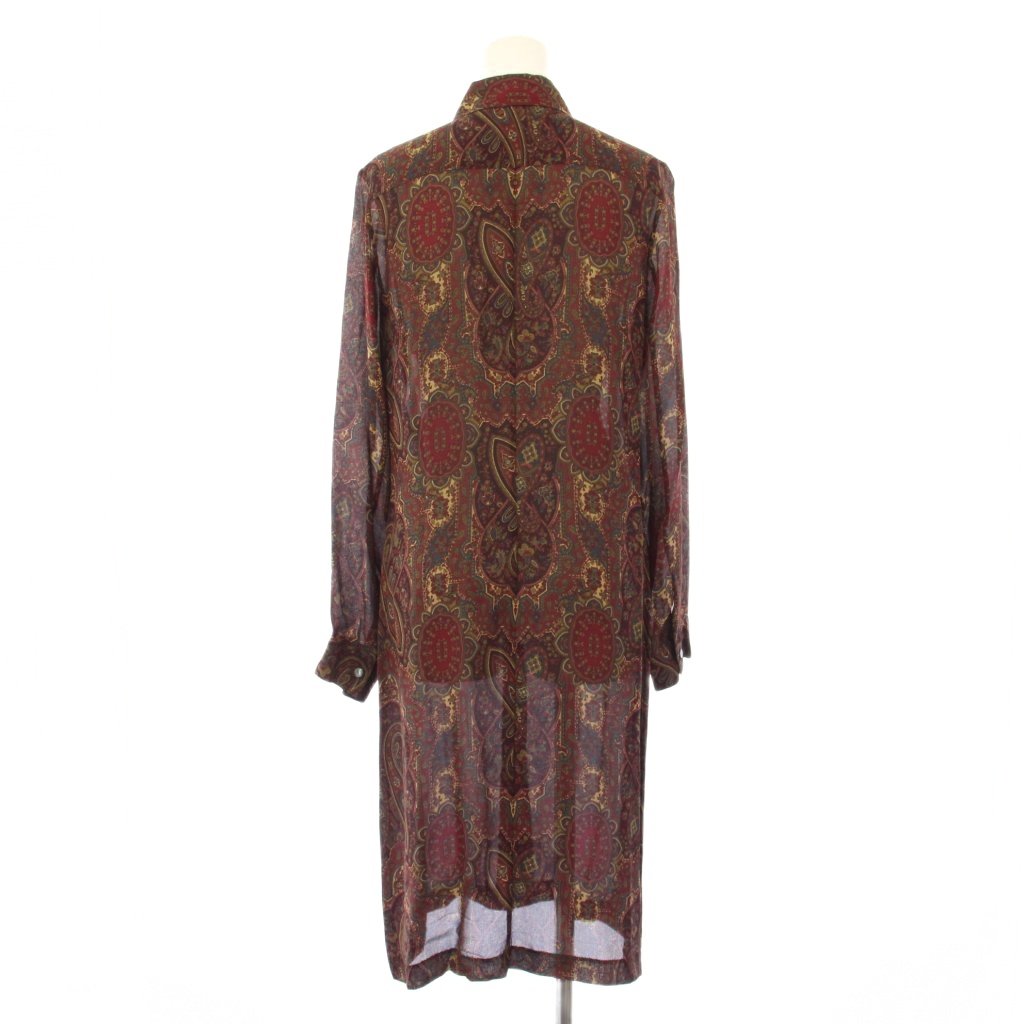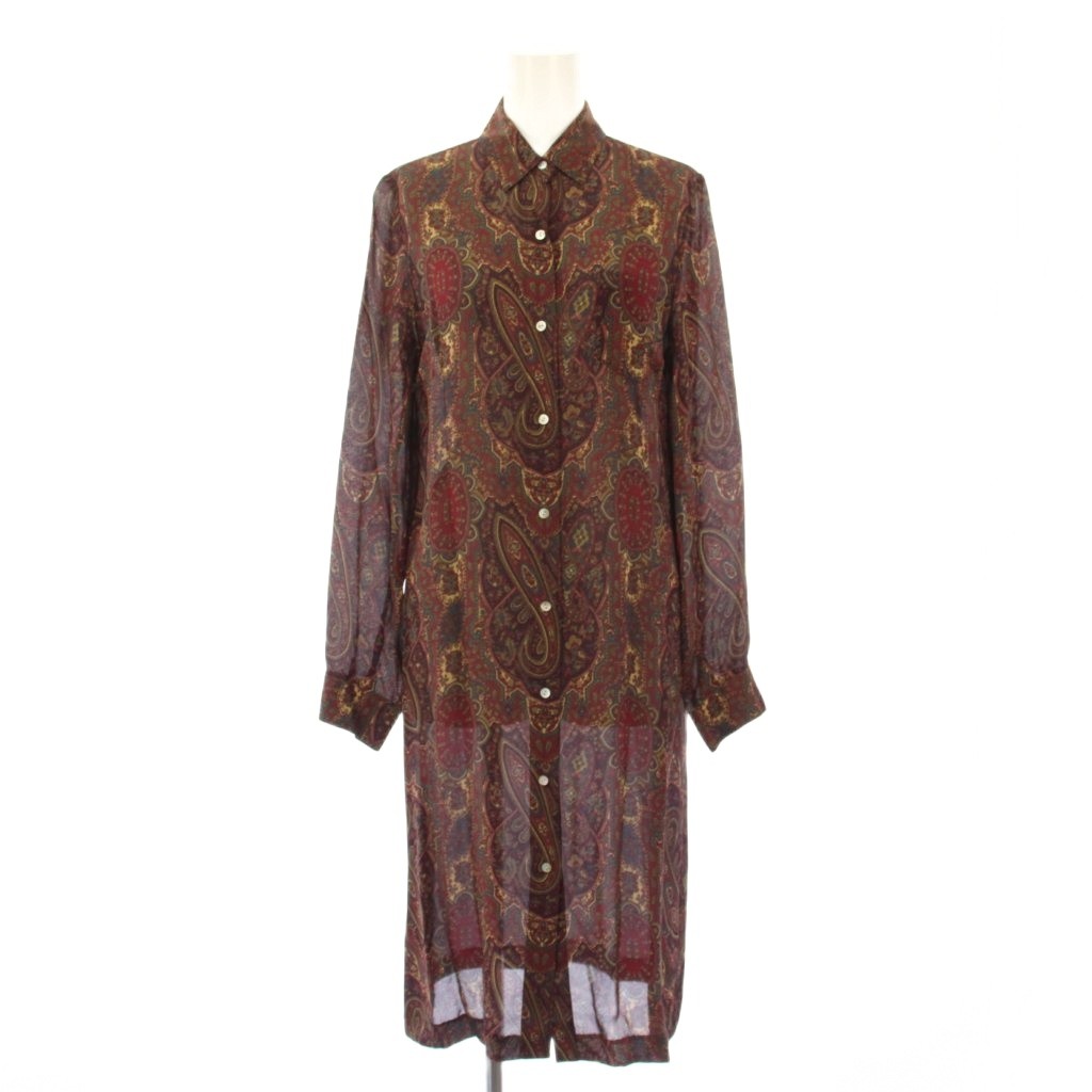 ラルフローレン RALPH LAUREN シャツワンピース ミモレ ロング 長袖 レギュラーカラー シアー シースルー ペイズリー柄 シルク 9 ボルドー /BB レディース