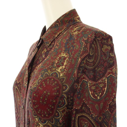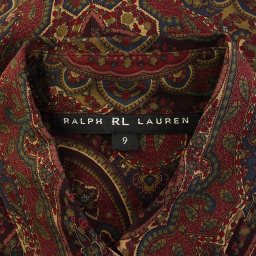 • ラルフローレン RALPH LAUREN シャツワンピース ミモレ ロング 長袖 レギュラーカラー シアー シースルー ペイズリー柄 シルク 9 ボルドー /BB レディース