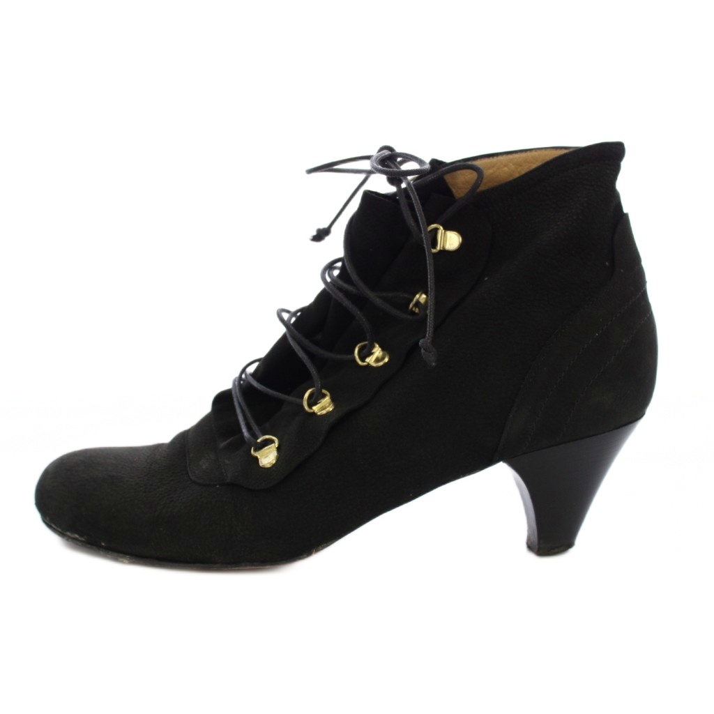 • ペリーコ PELLICO ショートブーツ チャンキーヒール レースアップ スエード 36 黒 /BM レディース