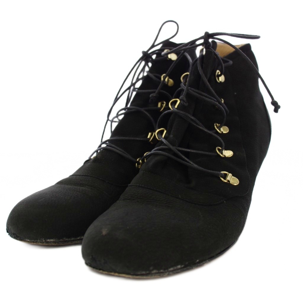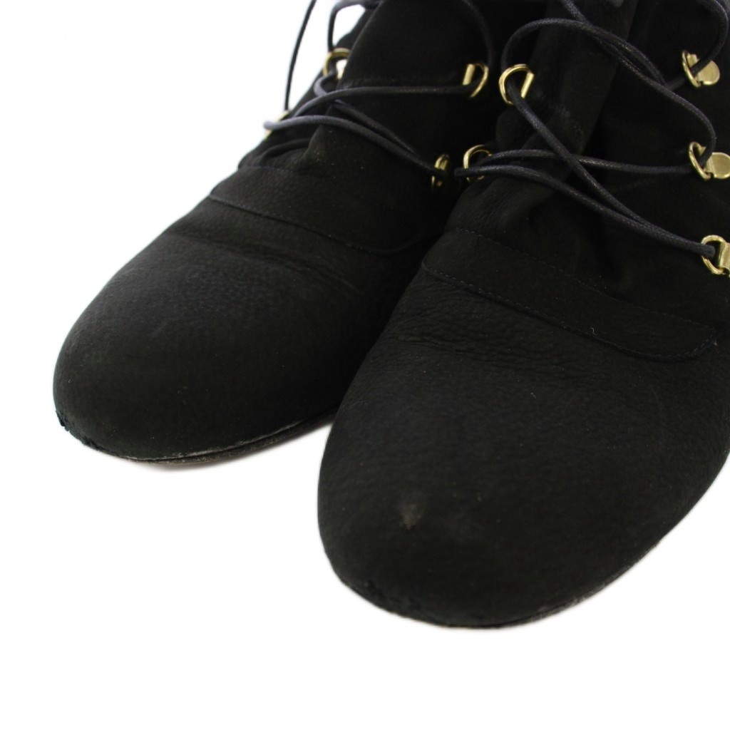 ペリーコ PELLICO ショートブーツ チャンキーヒール レースアップ スエード 36 黒 /BM レディース