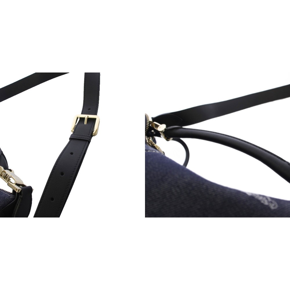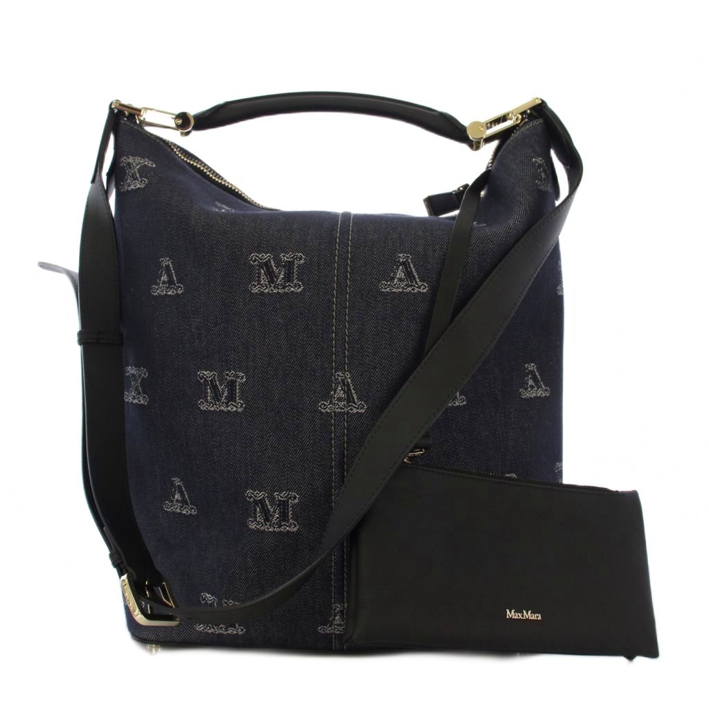 • マックスマーラ MAX MARA ジェーン コットン ジャカード ショルダーバッグ ハンドバッグ 2WAY 紺 /KH レディース