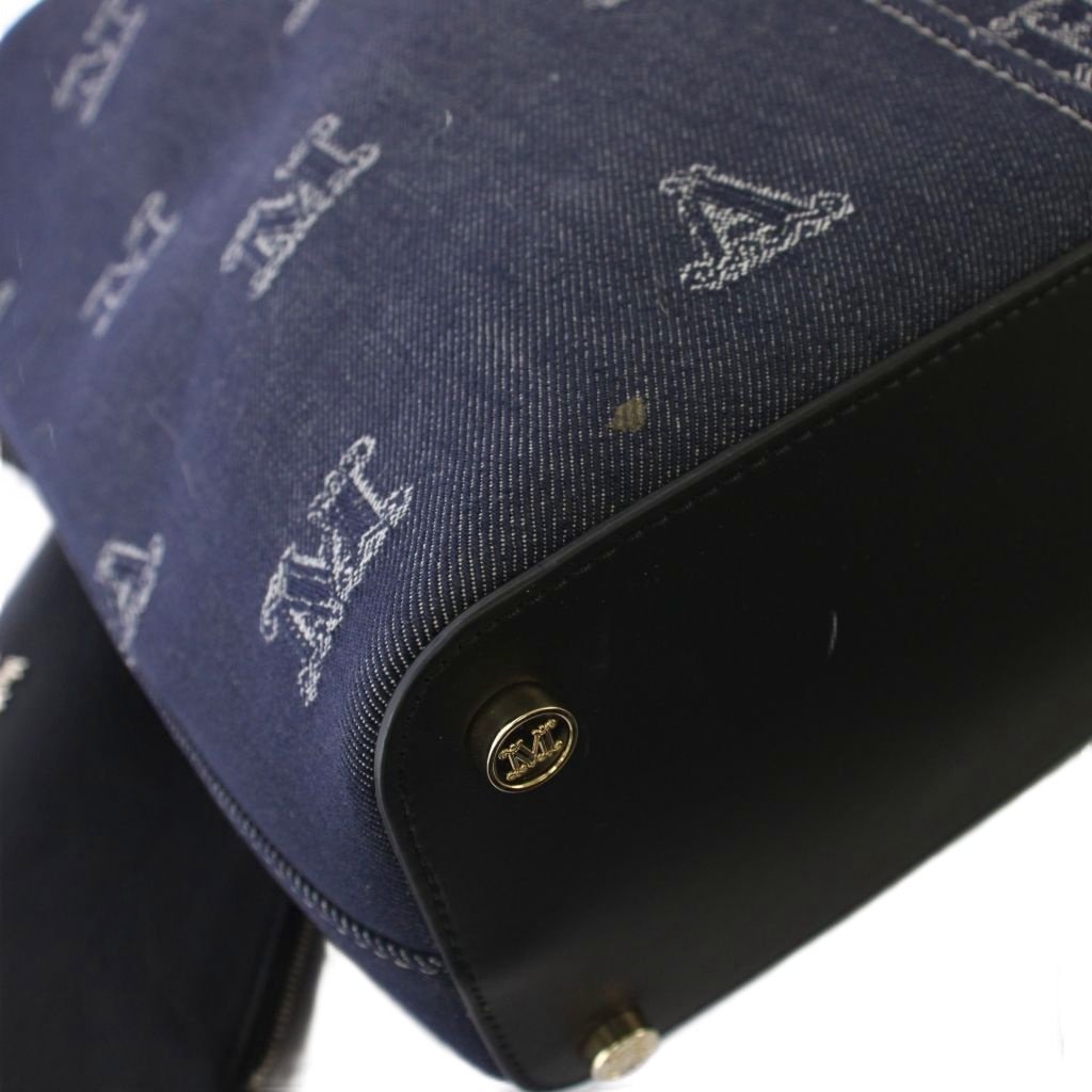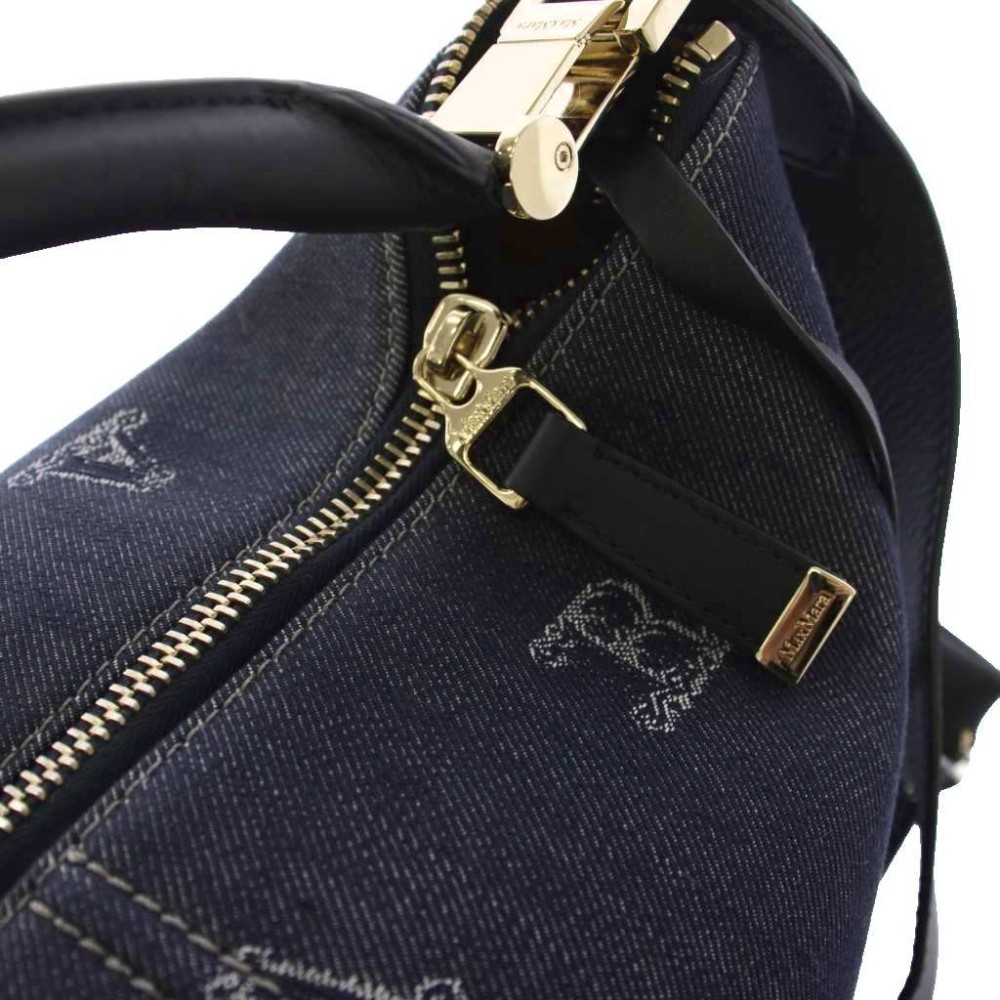 マックスマーラ MAX MARA ジェーン コットン ジャカード ショルダーバッグ ハンドバッグ 2WAY 紺 /KH レディース