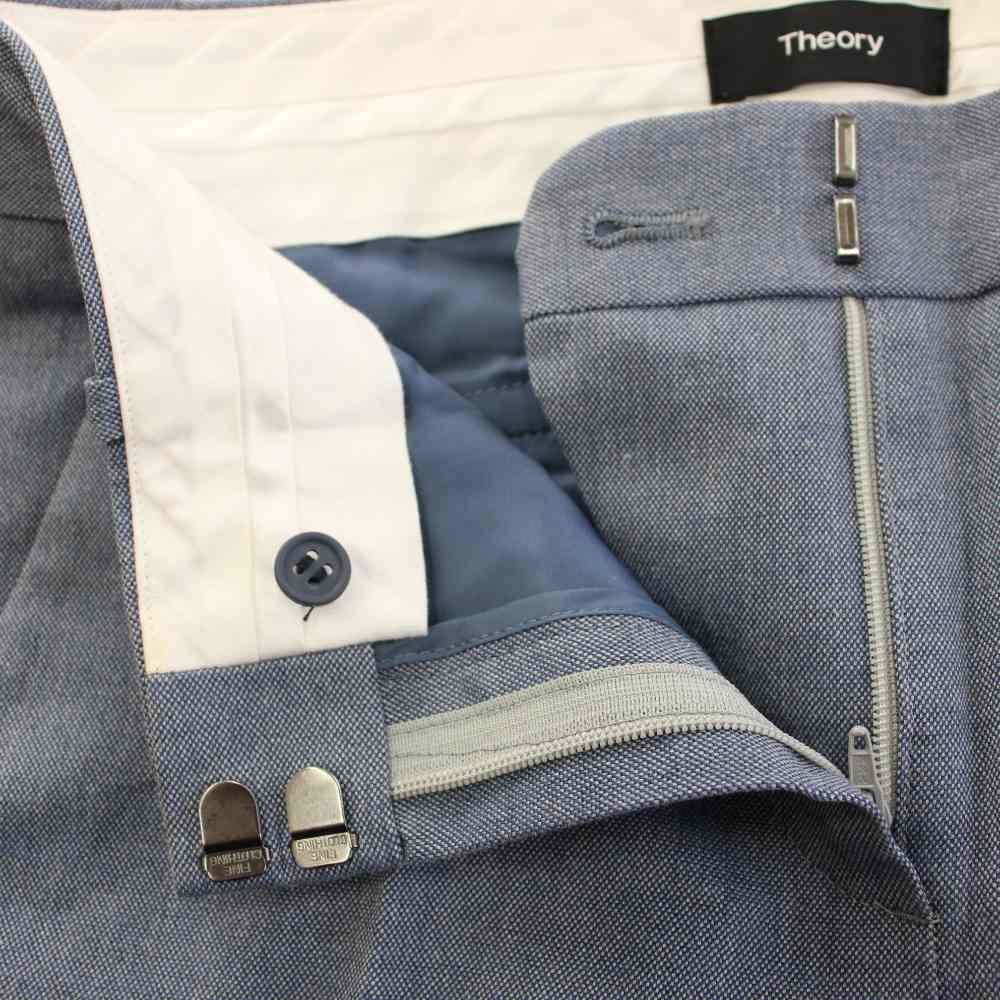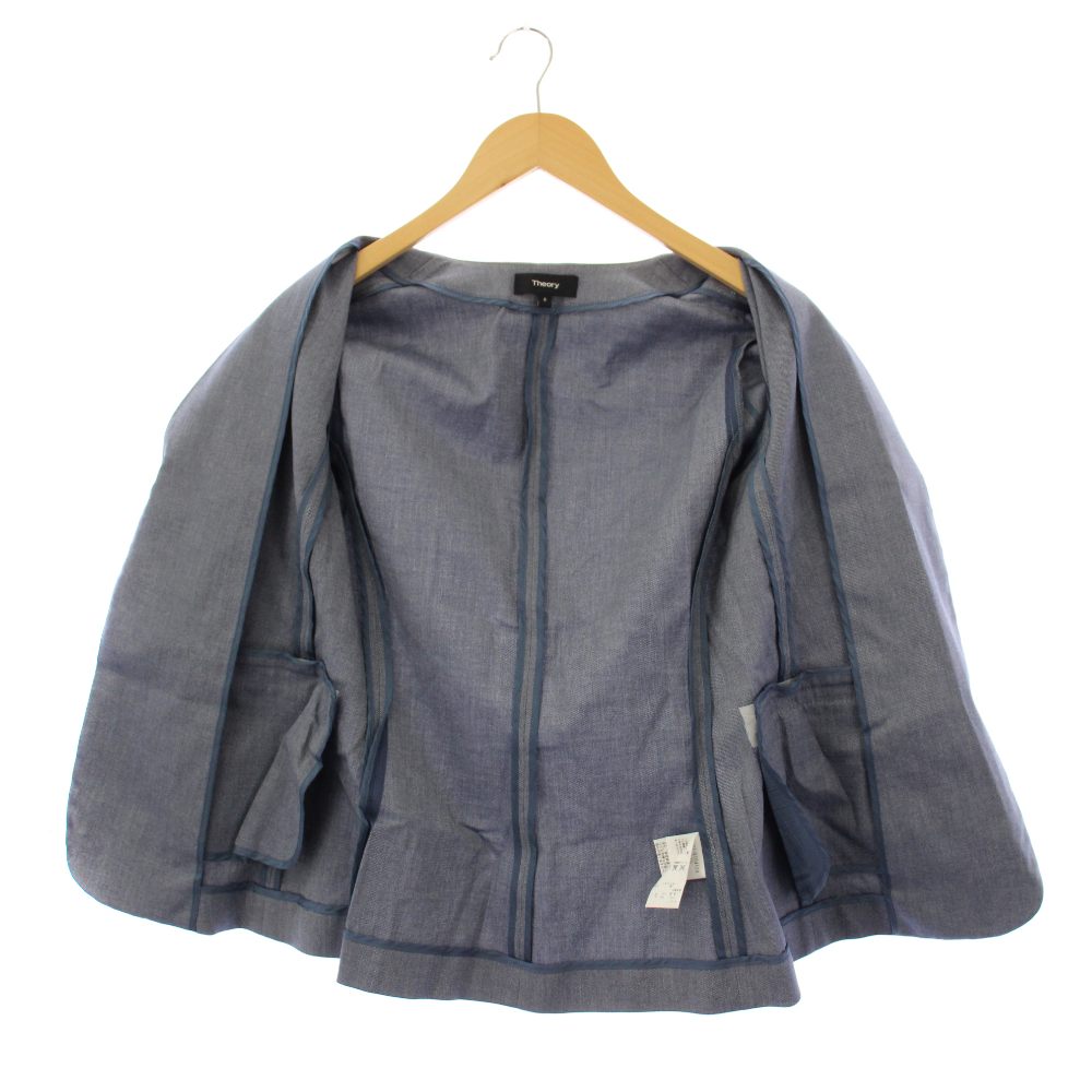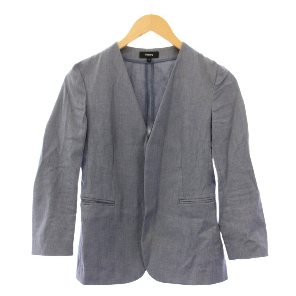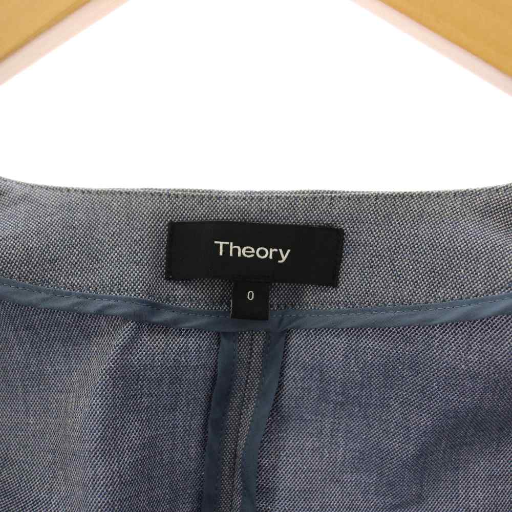 • セオリー Theory セットアップ ノーカラージャケット アウター 前開きトッパー スラックスパンツ ジップフライ ワンカラー 0 青 ブルー /BB レディース