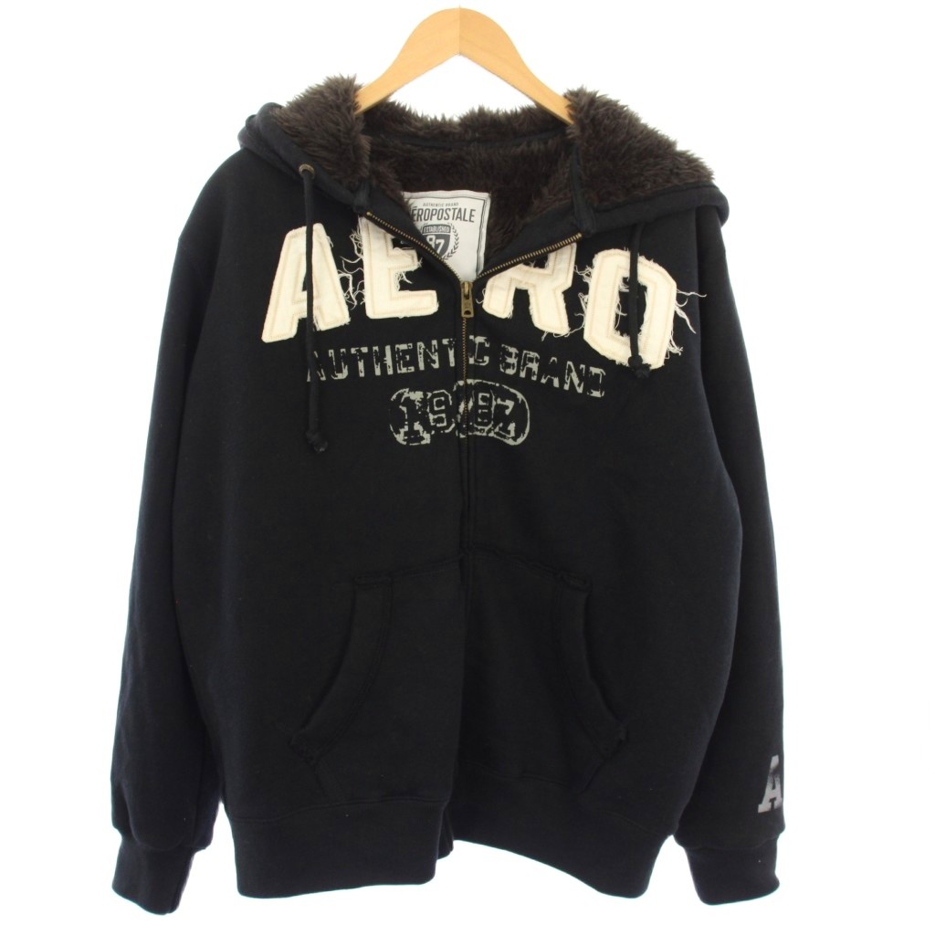 • エアロポステール AEROPOSTALE ジップアップパーカー 裏ボア 長袖 M 黒 /TK メンズ