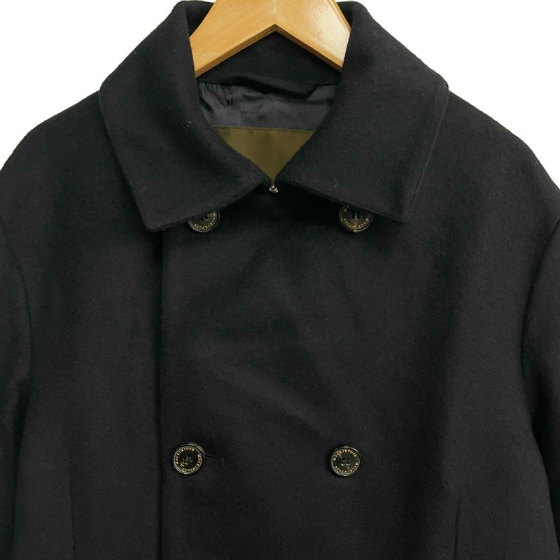 • マッキントッシュ MACKINTOSH スコットランドウール メルトンチェスターコート ダブル 茶タグ 英国製 ステンカラー 裏地総柄 シルク混 ブラック 黒 38 Mサイズ NO.DU 1016 メンズ