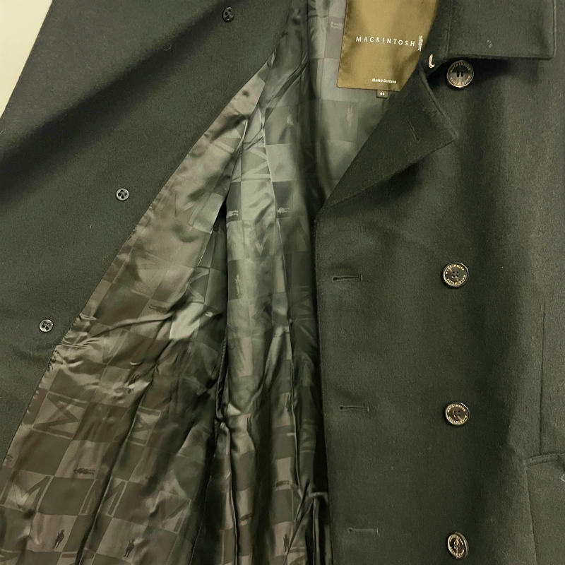 マッキントッシュ MACKINTOSH スコットランドウール メルトンチェスターコート ダブル 茶タグ 英国製 ステンカラー 裏地総柄 シルク混 ブラック 黒 38 Mサイズ NO.DU 1016 メンズ
