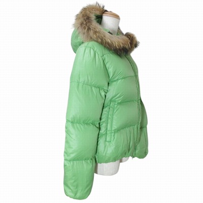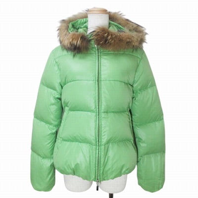 • デュベティカ DUVETICA ADHARA ダウンジャケット ジップアップ ファー フーディー ナイロン 黄緑 40 日本サイズM相当 IBO70 X レディース