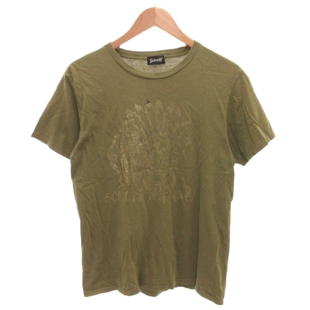 ショット SCHOTT NYC プリント Tシャツ 半袖 カーキ /FF ■YHS4 メンズ
