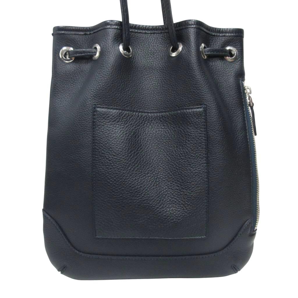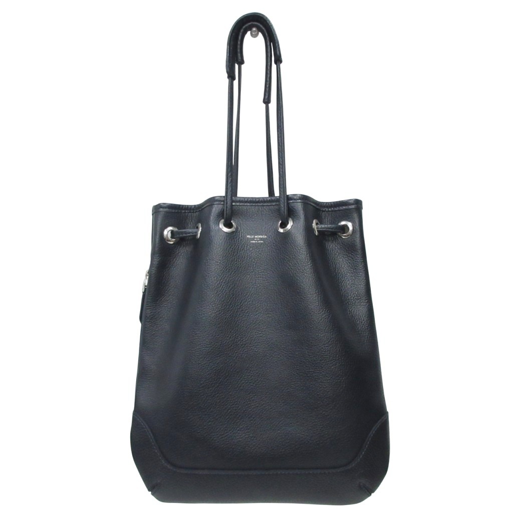 ペッレモルビダ PELLE MORBIDA ビームス BEAMS 別注 極美品 巾着バッグ シュリンクレザー ドローストリングバッグ 皮革 ネイビー メンズ レディース