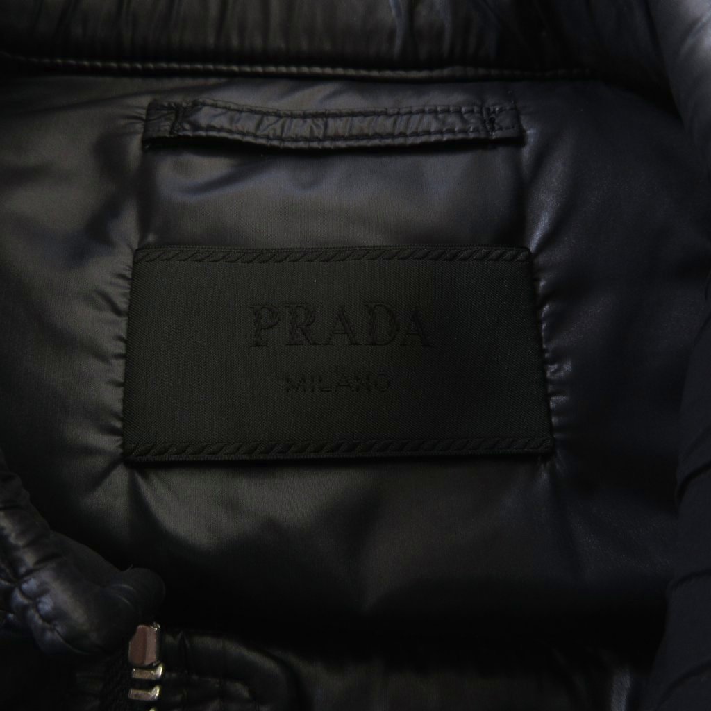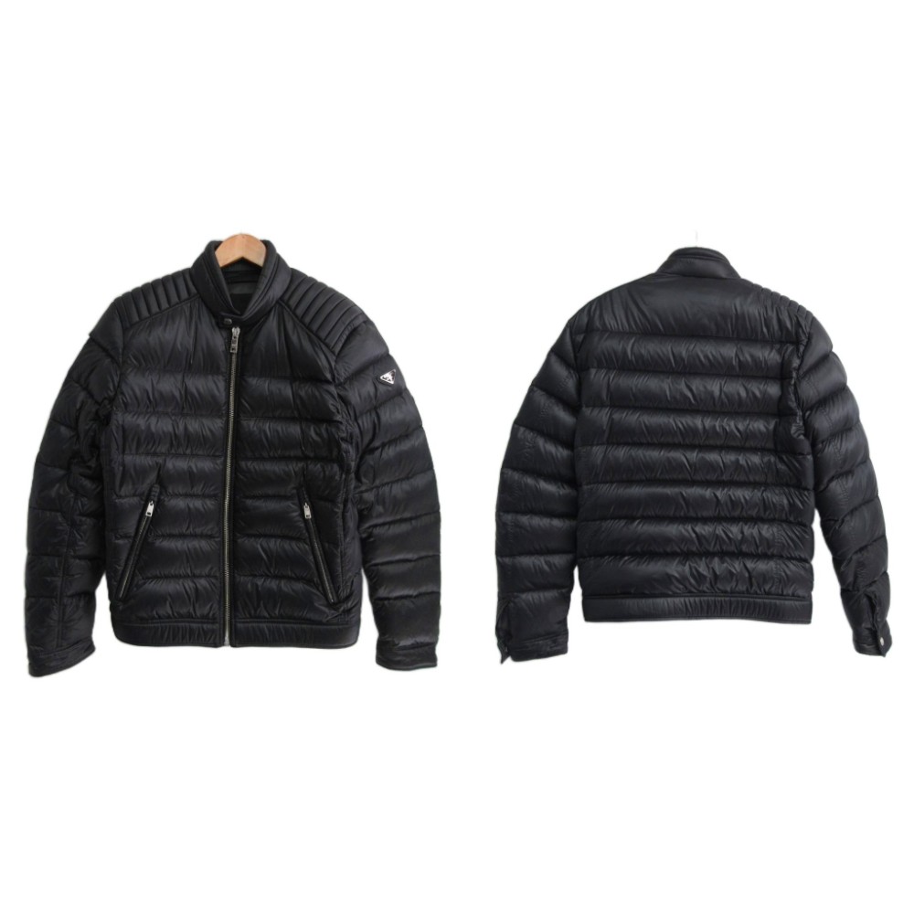 プラダ PRADA 美品 トライアングルロゴ バイカー ダウンジャケット SGB608 キルティング ダウンライダース 三角プレート 国内正規 黒 ブラック 46 ■MNK2 メンズ