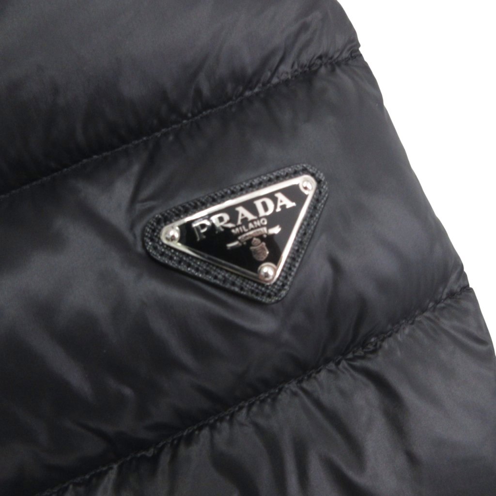 • プラダ PRADA 美品 トライアングルロゴ バイカー ダウンジャケット SGB608 キルティング ダウンライダース 三角プレート 国内正規 黒 ブラック 46 ■MNK2 メンズ