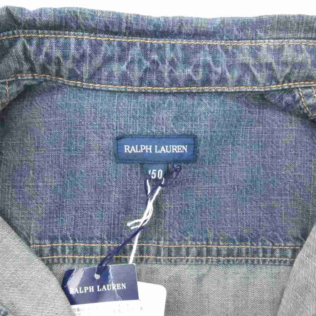 • 未使用品 ラルフローレン RALPH LAUREN タグ付き シャツワンピース デニム 半袖 フレア ベルト付き 150 青 ブルー /NU ■MNK2 キッズ
