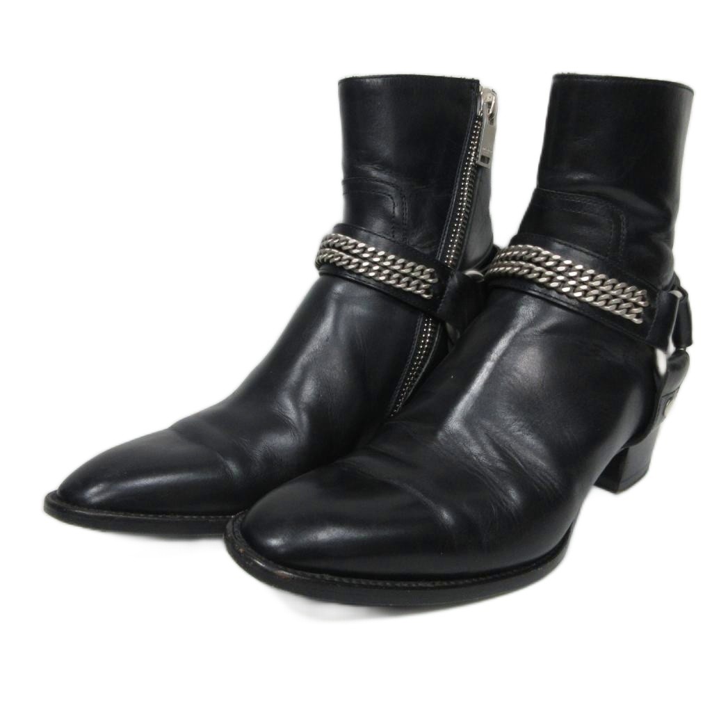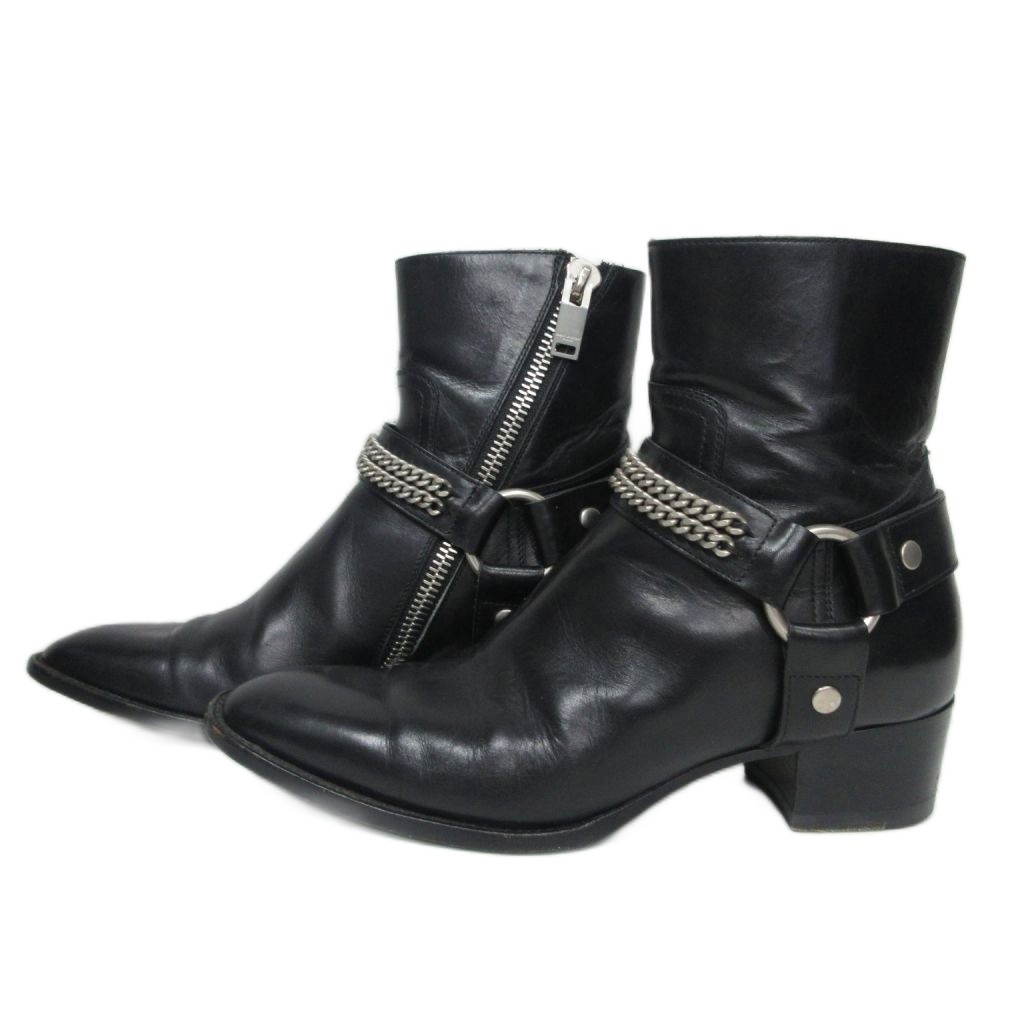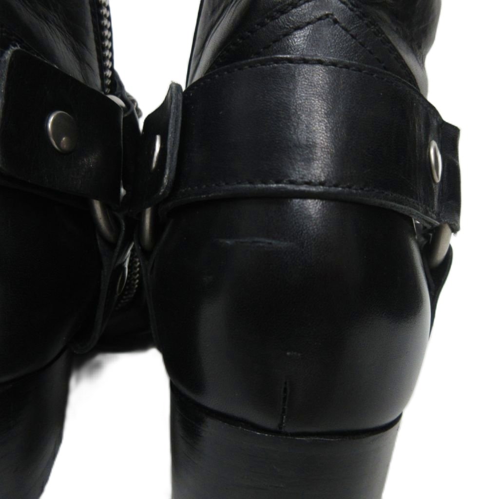 サンローラン パリ SAINT LAURENT PARIS ワイアット リングチェーン ハーネスブーツ レザーブーツ 37.5 黒 ブラック 335240 レディース