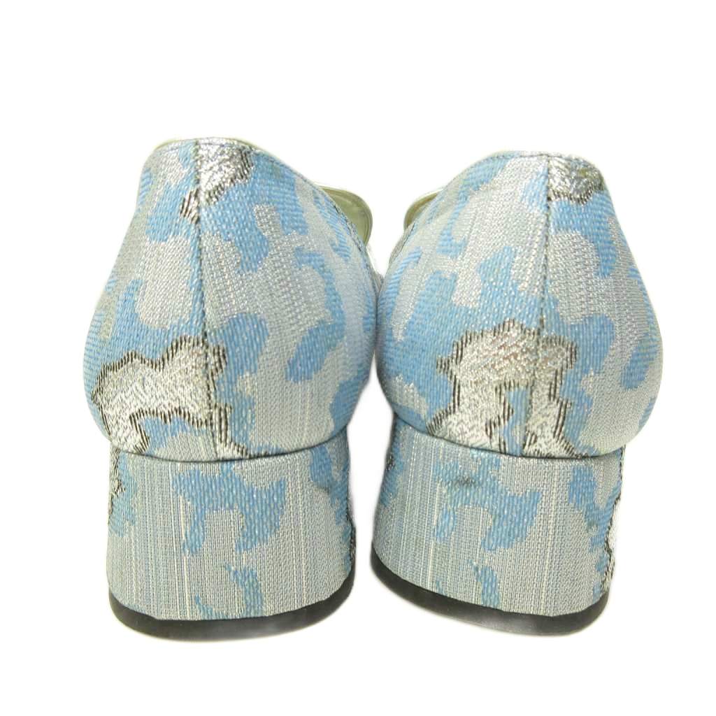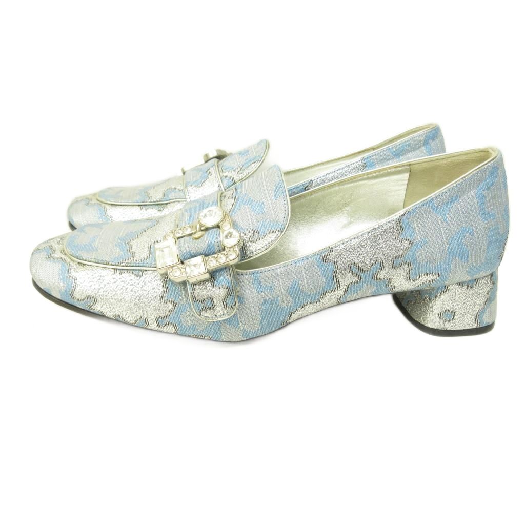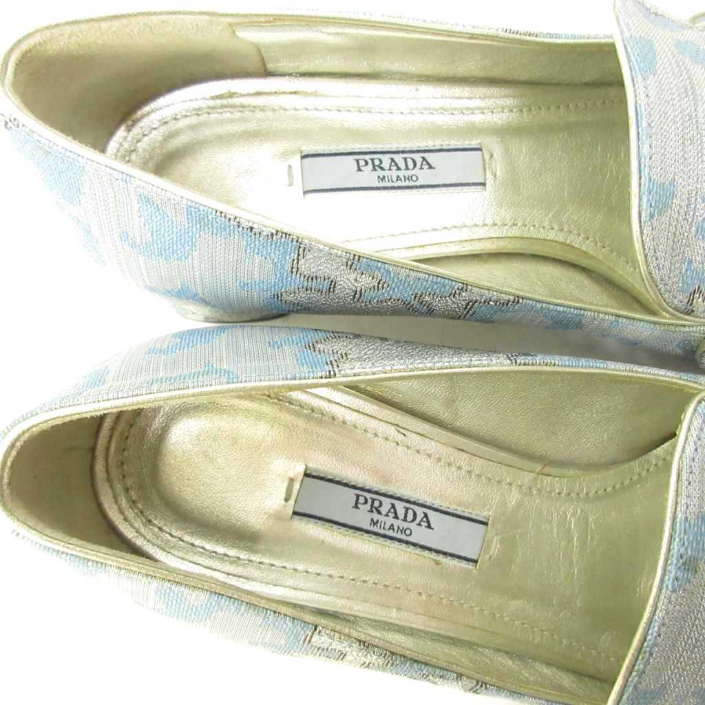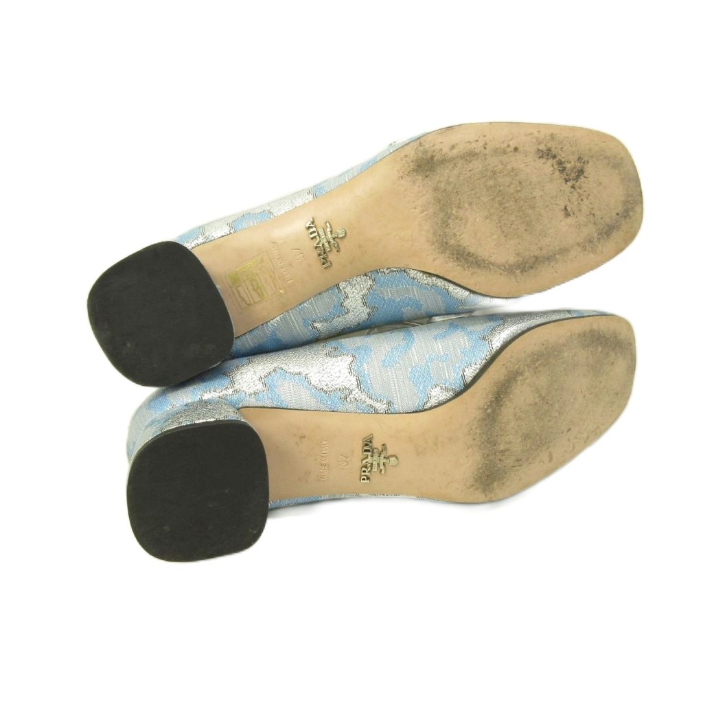 プラダ PRADA ビジュー ローファー パンプス チャンキーヒール 青 ブルー 37 約23.5cm ■MNK5