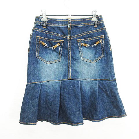 • エフデ ef-de スカート ボトムス デニム ひざ丈 マーメイド ユーズド加工 ストレッチ 7 インディゴブルー ※EKM レディース