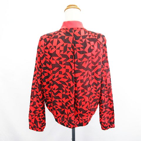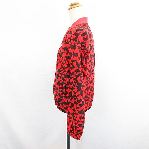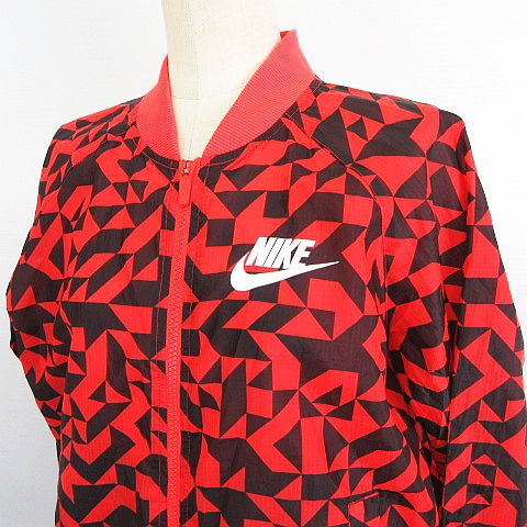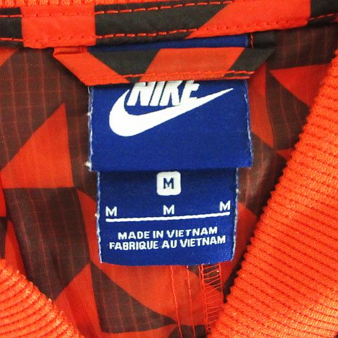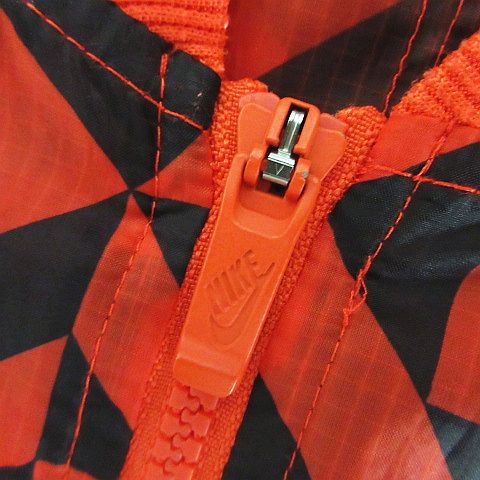 • ナイキ NIKE ウーブンジャケット ジャンパー 長袖 ジップアップ 幾何学模様 バックプリーツ 薄手 M オレンジ×ブラック スポーツウェア ※EKM レディース