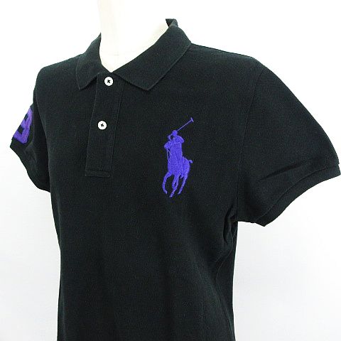 • ラルフローレン RALPH LAUREN ポロシャツ 半袖 ビッグポニー THE SKINNY POLO ナンバー コットン 7f ブラック ※EKM レディース
