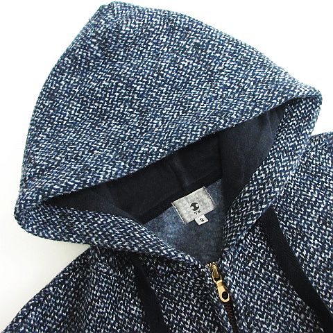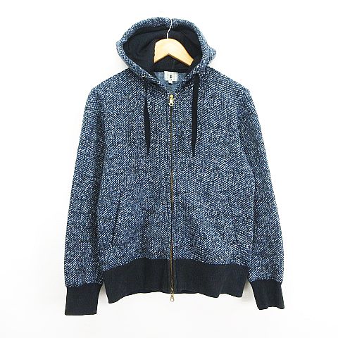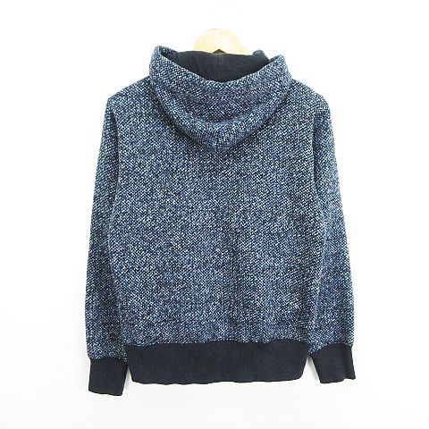 • タケオキクチ TAKEO KIKUCHI ニット ジャケット アウター 長袖 フード ジップアップ 裏フリース 2 ネイビー系 ※EKM メンズ