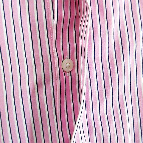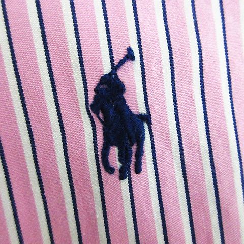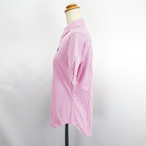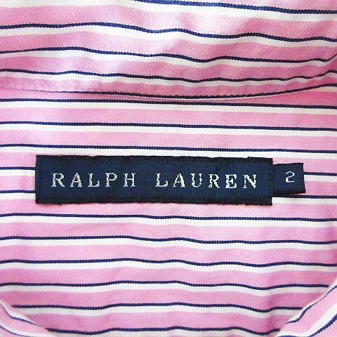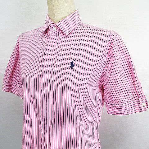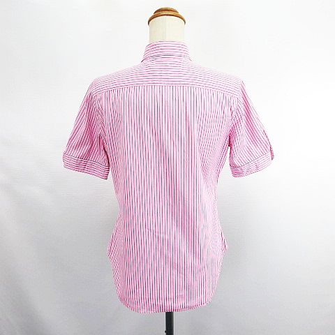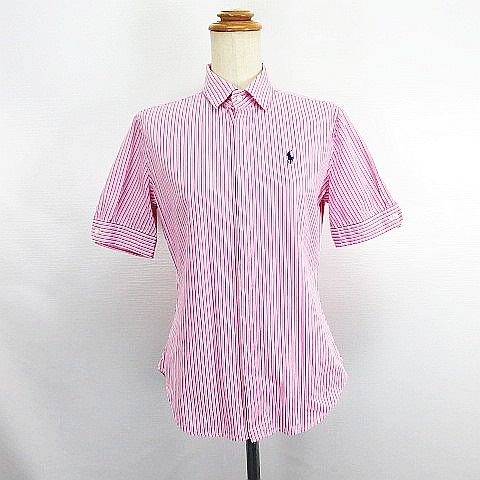 • ラルフローレン RALPH LAUREN シャツ ブラウス 半袖 ストライプ 比翼 ロゴ コットン 2 ピンク ※EKM レディース