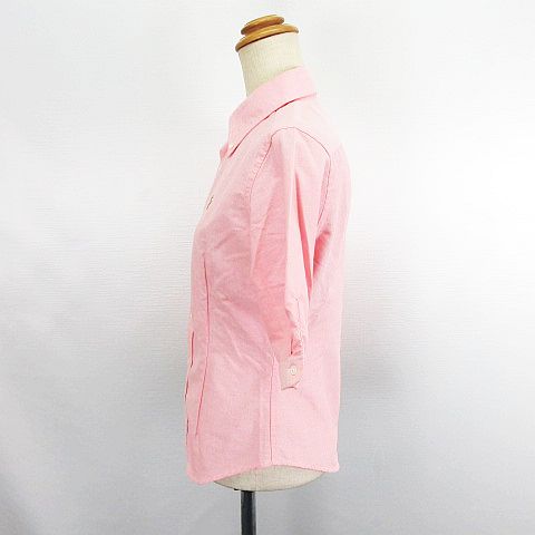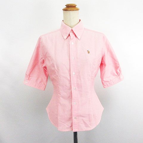 • ラルフローレン RALPH LAUREN シャツ ブラウス 五分袖 ボタンダウン ウエストシェイプ ロゴ 刺繍 コットン 7 ピンク ※EKM レディース