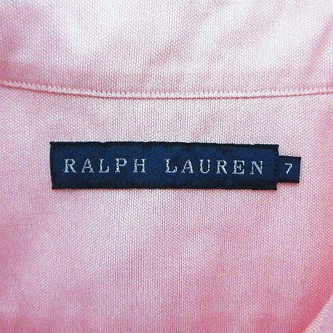 ラルフローレン RALPH LAUREN シャツ ブラウス 五分袖 ボタンダウン ウエストシェイプ ロゴ 刺繍 コットン 7 ピンク ※EKM レディース
