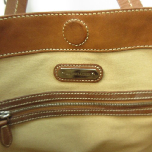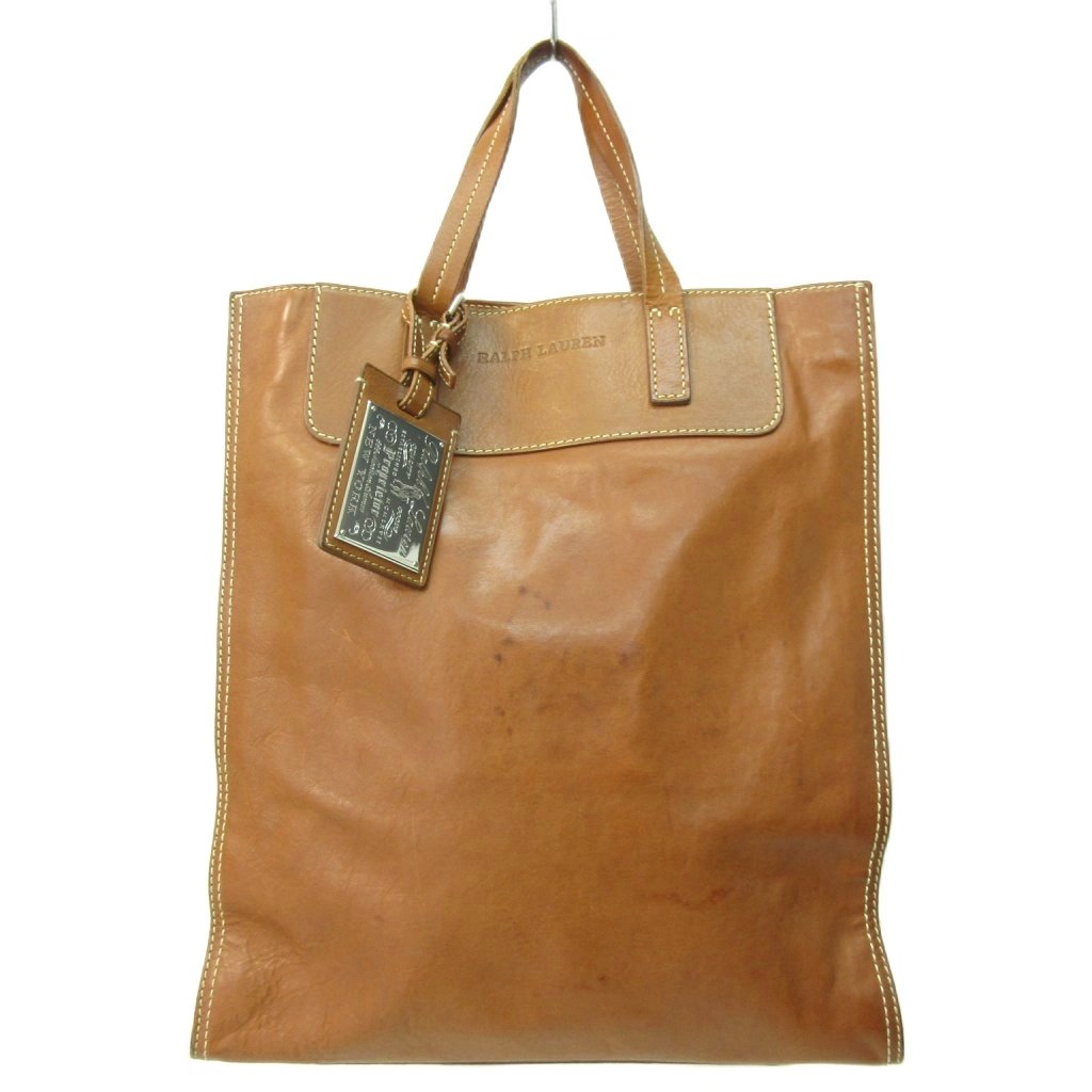 • ラルフローレン RALPH LAUREN レザー トートバッグ 肩掛け ロゴ プレート 茶 ブラウン メンズ