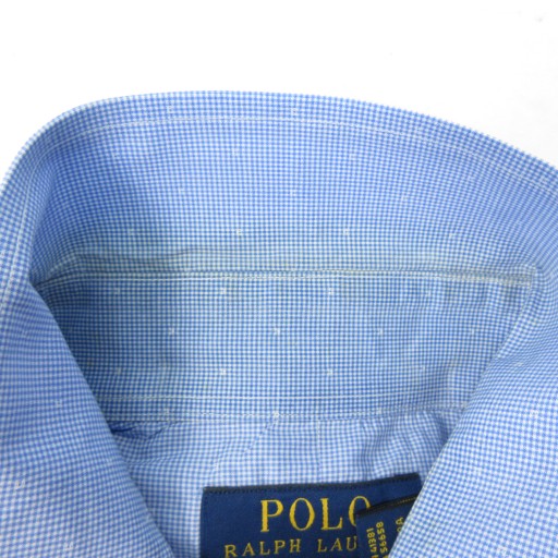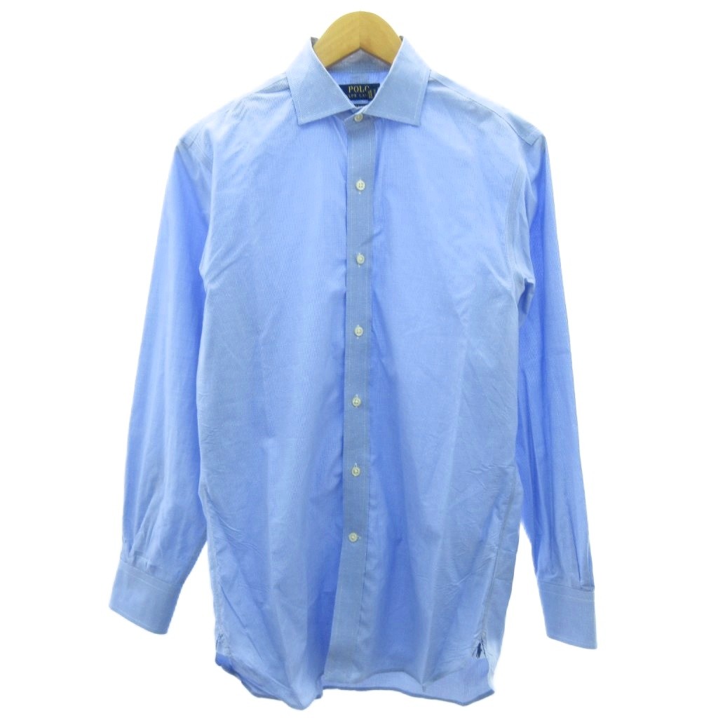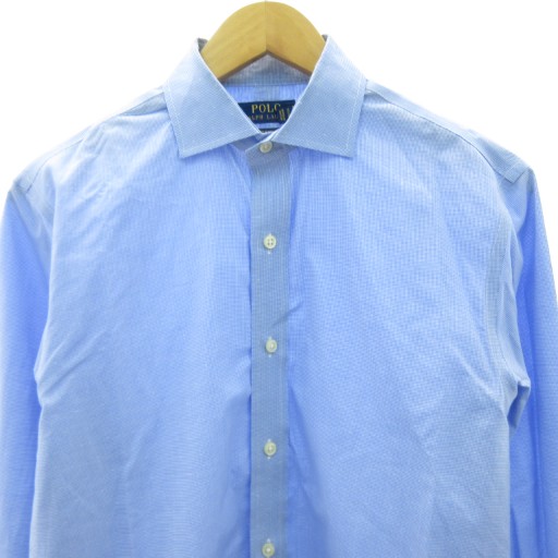 • ラルフローレン RALPH LAUREN 近年 ドット シャツ ポニー刺しゅう 長袖 青 ブルー 15.5 約S 0200015605 STK メンズ