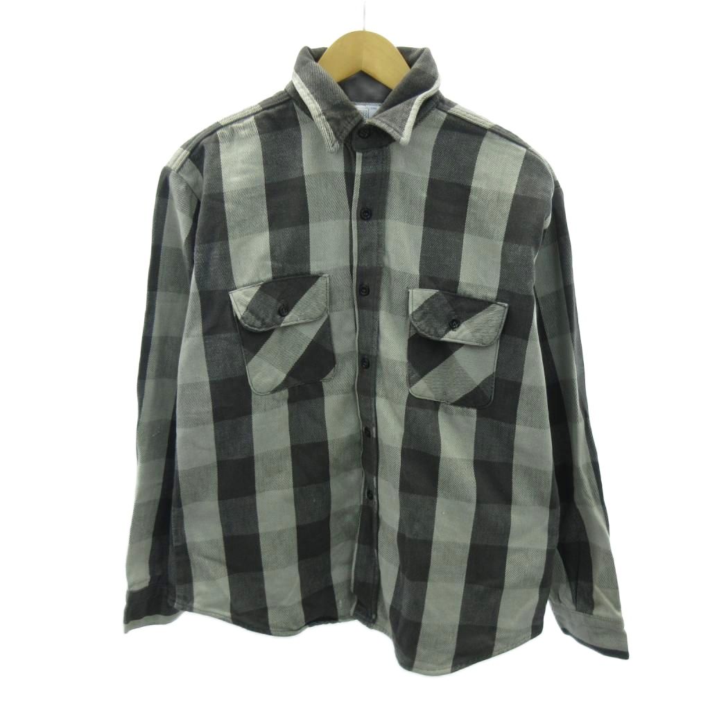 • ファイブブラザー FIVE BROTHER ヴィンテージ 70s ヘビネル フランネルシャツ ブロックチェック L 白 ホワイト グレー 1206 メンズ