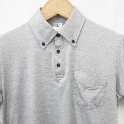 • ミズノ MIZUNO ゴルフ スポーツウエア シャツ ポロシャツ 半袖 ボタンダウン 速乾 グレー L メンズ