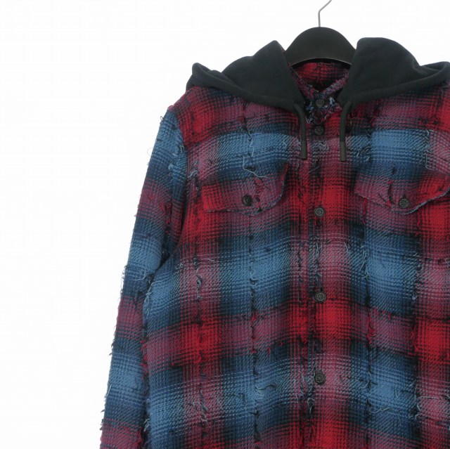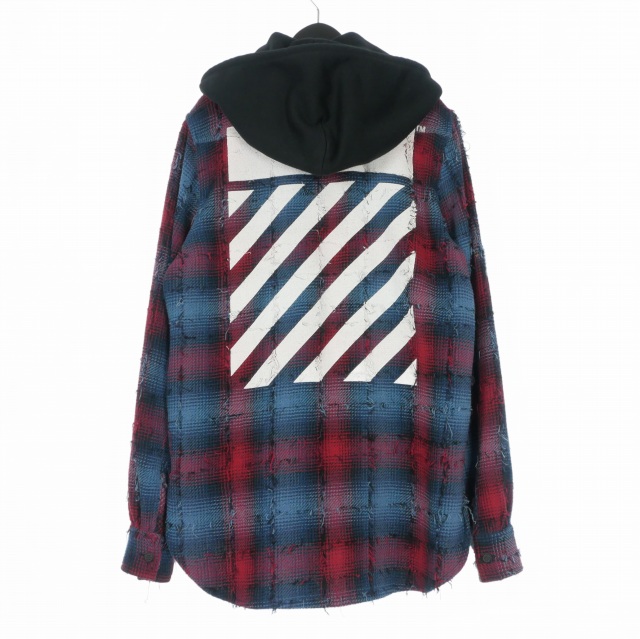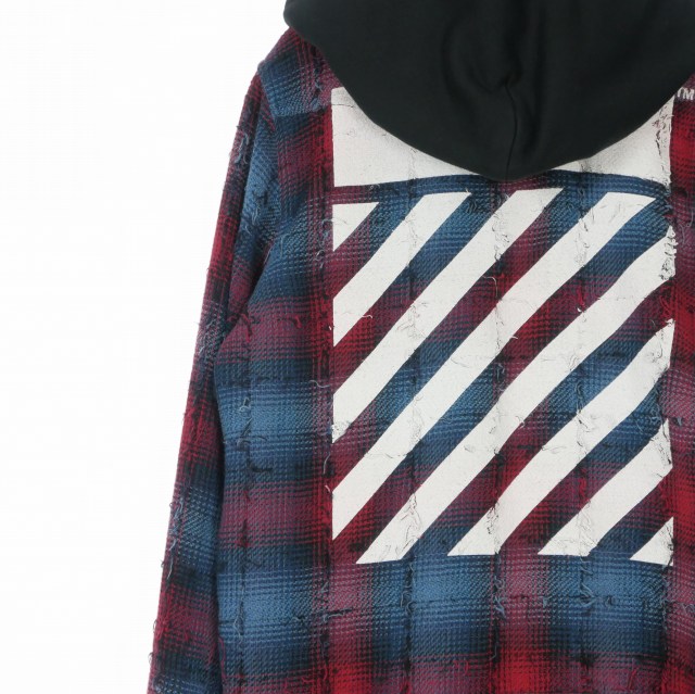 • オフホワイト OFF WHITE 17AW バックバイアスプリントチェックシャツ フーディ 長袖 S レッド/ブルー OMGA035F17329018 国内正規 メンズ