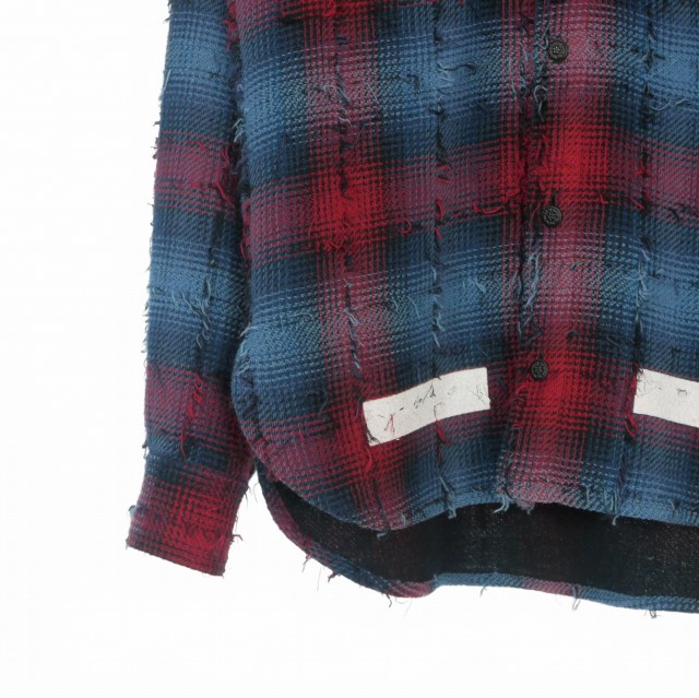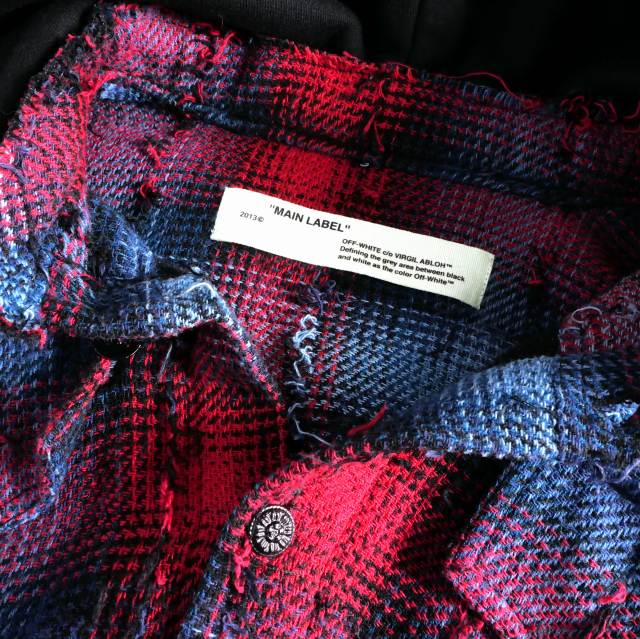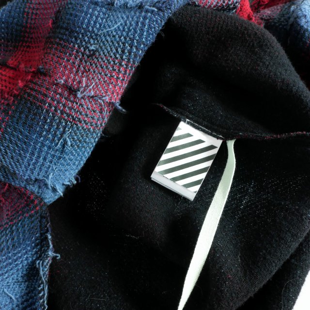 オフホワイト OFF WHITE 17AW バックバイアスプリントチェックシャツ フーディ 長袖 S レッド/ブルー OMGA035F17329018 国内正規 メンズ