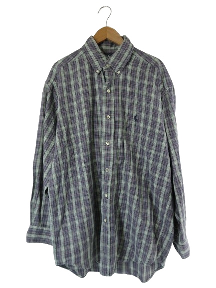 • ラルフローレン RALPH LAUREN シャツ 前開き チェック 長袖 サイズM ブルー グリーン 国内正規 QQQ メンズ