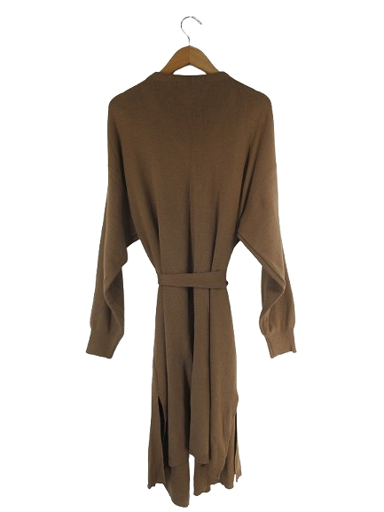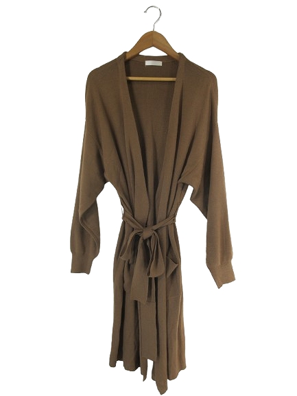 ドレスキップ DRESKIP ロング ニット カーディガン 長袖 無地 前開き ひざ丈 サイズM ブラウン QQQ メンズ