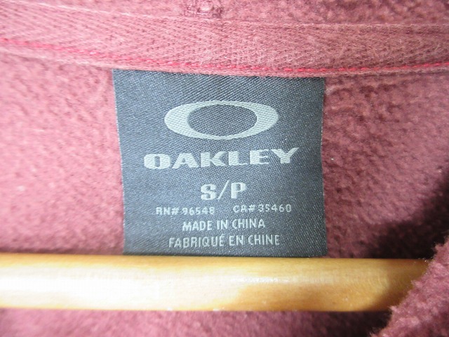 オークリー OAKLEY プルオーバー パーカー 長袖 フード 裏起毛 プリント ロゴ グレー レッド サイズS QQQ メンズ
