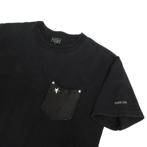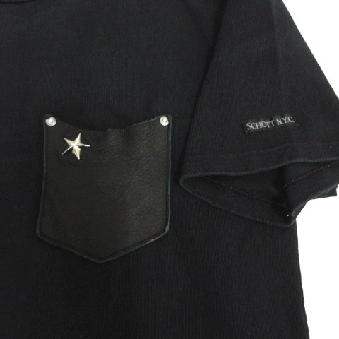 • ショット SCHOTT LEATHER PKT T ONESTAR レザー ポケット 半袖Tシャツ 319304 半袖 コットン ブラック 黒 M メンズ