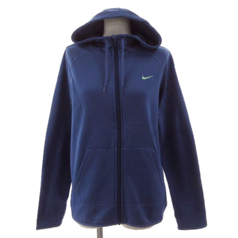 ナイキ NIKE DRY-FITジップアップパーカー 683657-508 ジャージ ロゴ刺繍 長袖 サムホール 裏起毛 ブルー系 青系 M レディース