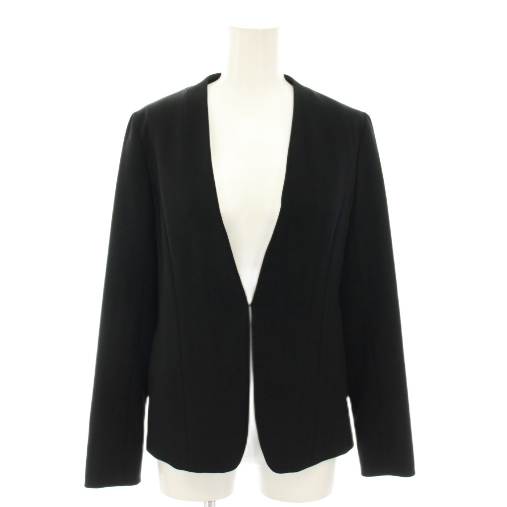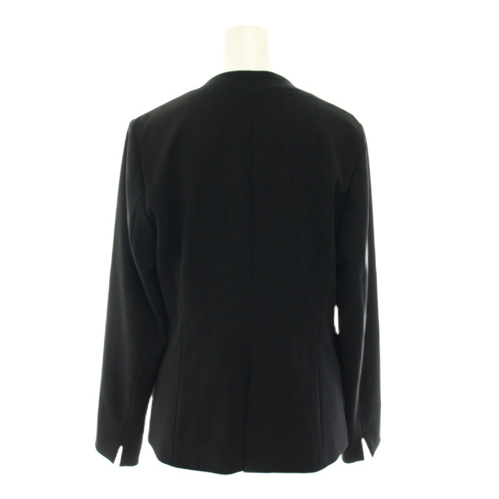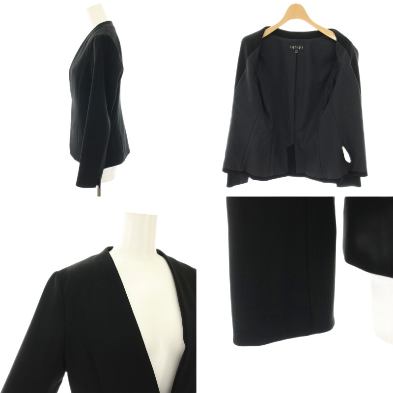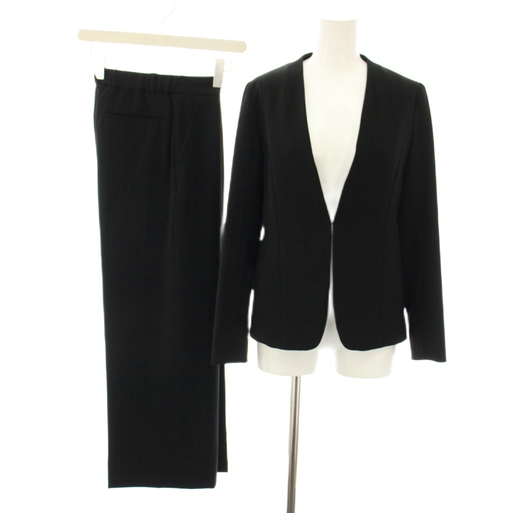 インディヴィ INDIVI スーツ セットアップ 上下 ウールライクノーカラージャケット イージーパンツ スラックス ストライプ柄 36 黒 ブラック /YT ■BM レディース
