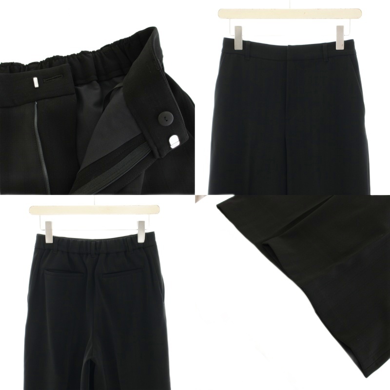 • インディヴィ INDIVI スーツ セットアップ 上下 ウールライクノーカラージャケット イージーパンツ スラックス ストライプ柄 36 黒 ブラック /YT ■BM レディース