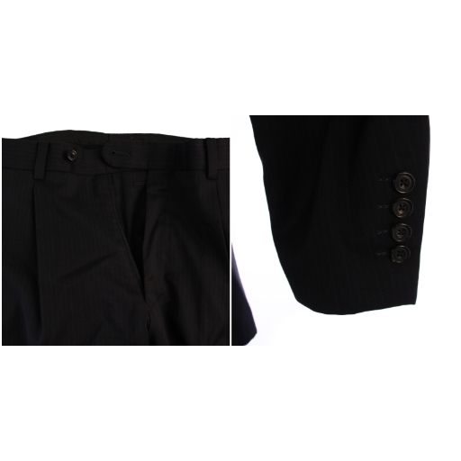 バーバリー BURBERRY セットアップ スーツ 上下 テーラードジャケット 背抜き シングル 2B パンツ ジップフライ ストライプ柄 ウール 90-78-165 黒 /BM ■BM メンズ