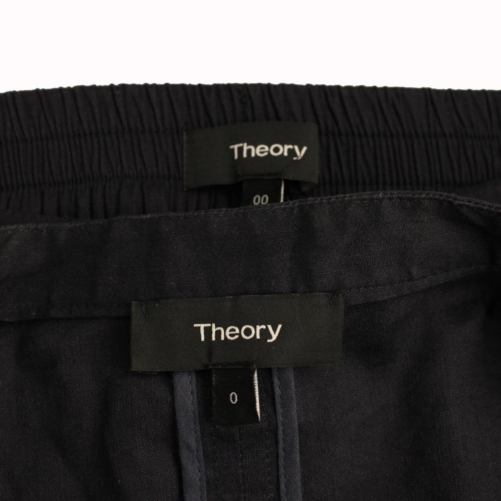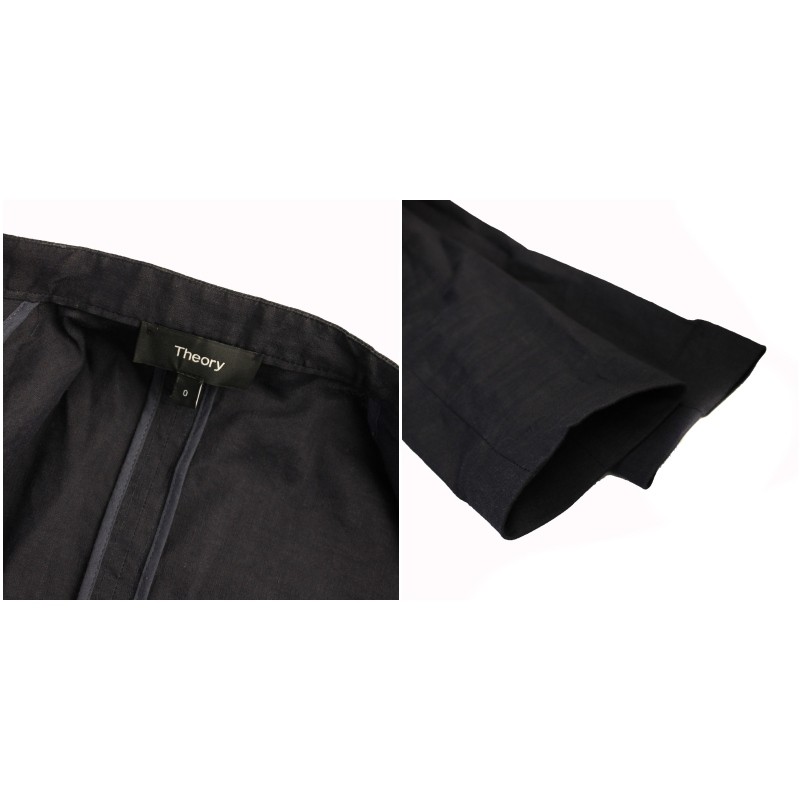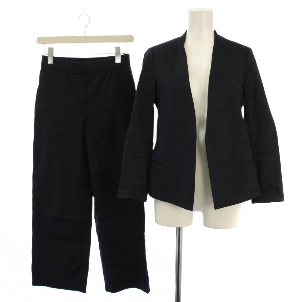 セオリー Theory セットアップ 上下 ノーカラージャケット スラックスパンツ リネン混 0 00 ネイビー 01-9104017 01-9106028 /BM ■MU レディース