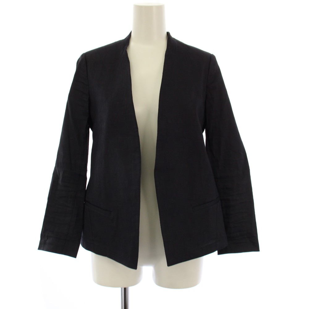 • セオリー Theory セットアップ 上下 ノーカラージャケット スラックスパンツ リネン混 0 00 ネイビー 01-9104017 01-9106028 /BM ■MU レディース