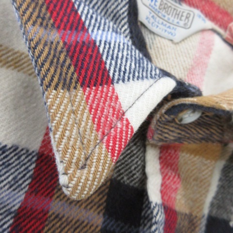 • ファイブブラザー FIVE BROTHER 80s 青茶タグ ヴィンテージ TALLMAN ネルシャツ 長袖 コットン チェック 総柄 XL 白 アイボリー /AO12 ■GY01 メンズ