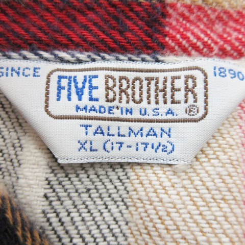 ファイブブラザー FIVE BROTHER 80s 青茶タグ ヴィンテージ TALLMAN ネルシャツ 長袖 コットン チェック 総柄 XL 白 アイボリー /AO12 ■GY01 メンズ
