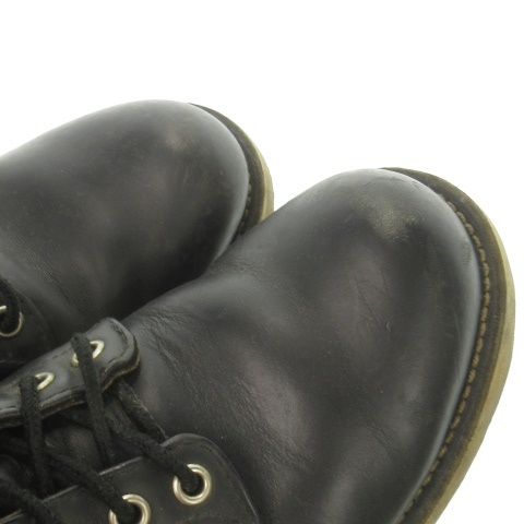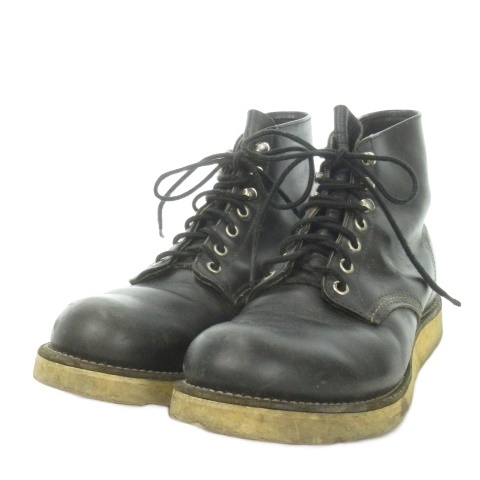• レッドウィング REDWING 刺繍羽根タグ 08165-1 6インチ クラシックラウンド ワークブーツ レザー レースアップ ステッチ 7.5D 25.5cm 黒 ブラック /MN6 ■GY01 メンズ