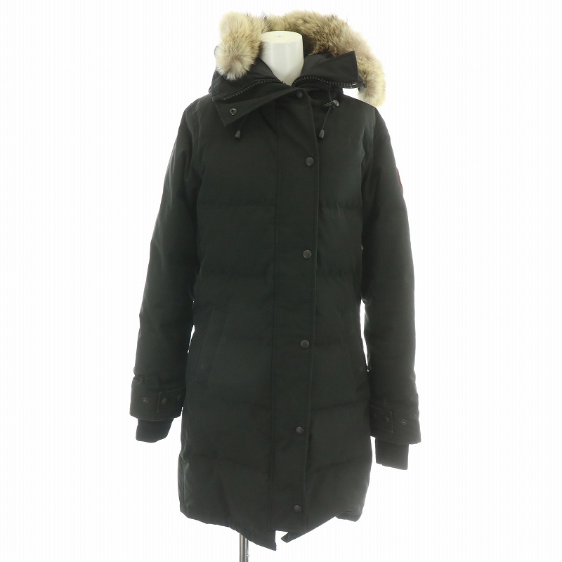 カナダグース CANADA GOOSE シェルバーン パーカ フュージョンフィット ヘリテージ ダウンジャケット ロング ワッペン 襟コヨーテファー XS 黒 ブラック 3802L /MW ■GY18 レディース